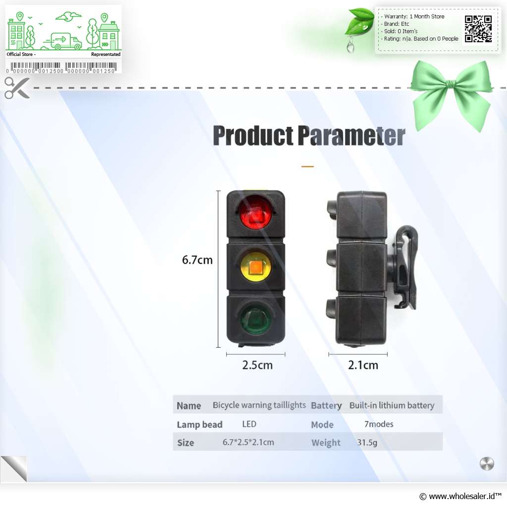 Bentuknya menyerupai lampu rambu lalu lintas, terdapat warna merah, kuning, dan hijau yang menambah kesan unik. Dilengkapi dengan LED dan 7 mode lampu yang mudah cara pengoperasiannya. Dengan menggunakan lampu rambu ini, dapat meningkatkan keamanan aktivitas Anda saat bersepeda di malam hari.