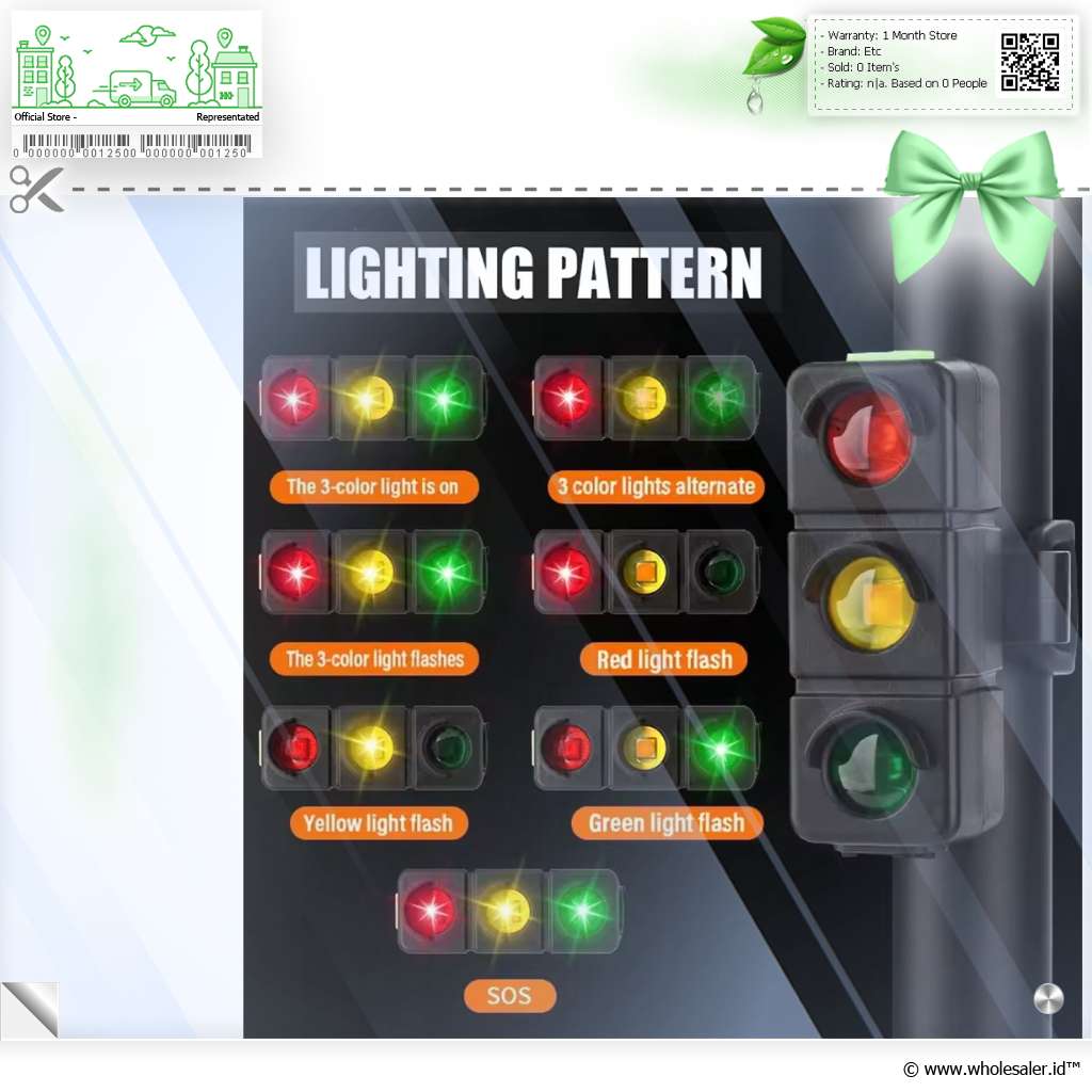 7 Mode Lampu Untuk fungsi yang lebih menarik, lampu ini menyediakan 7 mode yang dapat Anda ubah dengan mudah. Modenya dapat berupa 3 warna menyala bersamaan, bergantian, berkedip, lampu merah berkedip, lampu kuning berkedip, lampu hijau berkedip, dan untuk tanda SOS. |