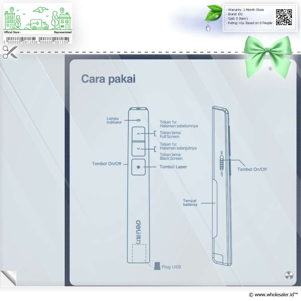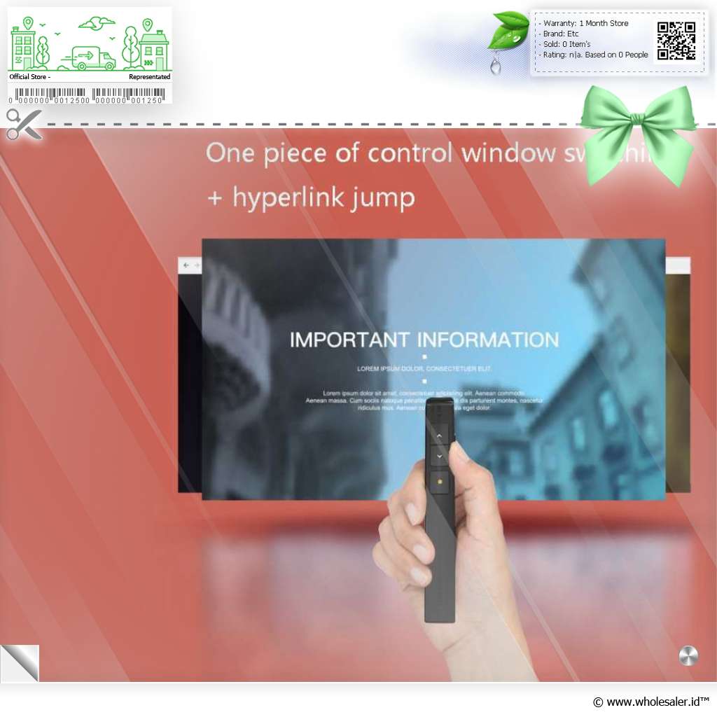 Mudah Digenggam dan Dibawa Alat ini memiliki bentuk yang mudah untuk digenggam dan dibawa kemana saja. Anda bisa membawa alat ini kemana pun dan dimana pun Anda akan melakukan presentasi. Mudah Digunakan Untuk menggunakan pointer, Anda hanya perlu menghubungkannya dengan laptop menggunakan USB tanpa instalasi tambahan di laptop.