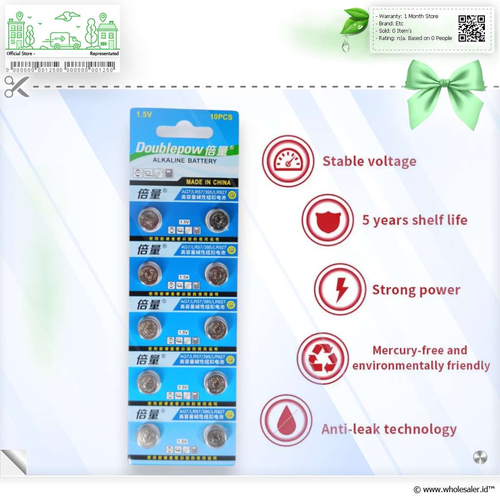 - 1 x Doublepow Baterai Kancing Alkaline AG7 LR57 395 LR927 1.5V