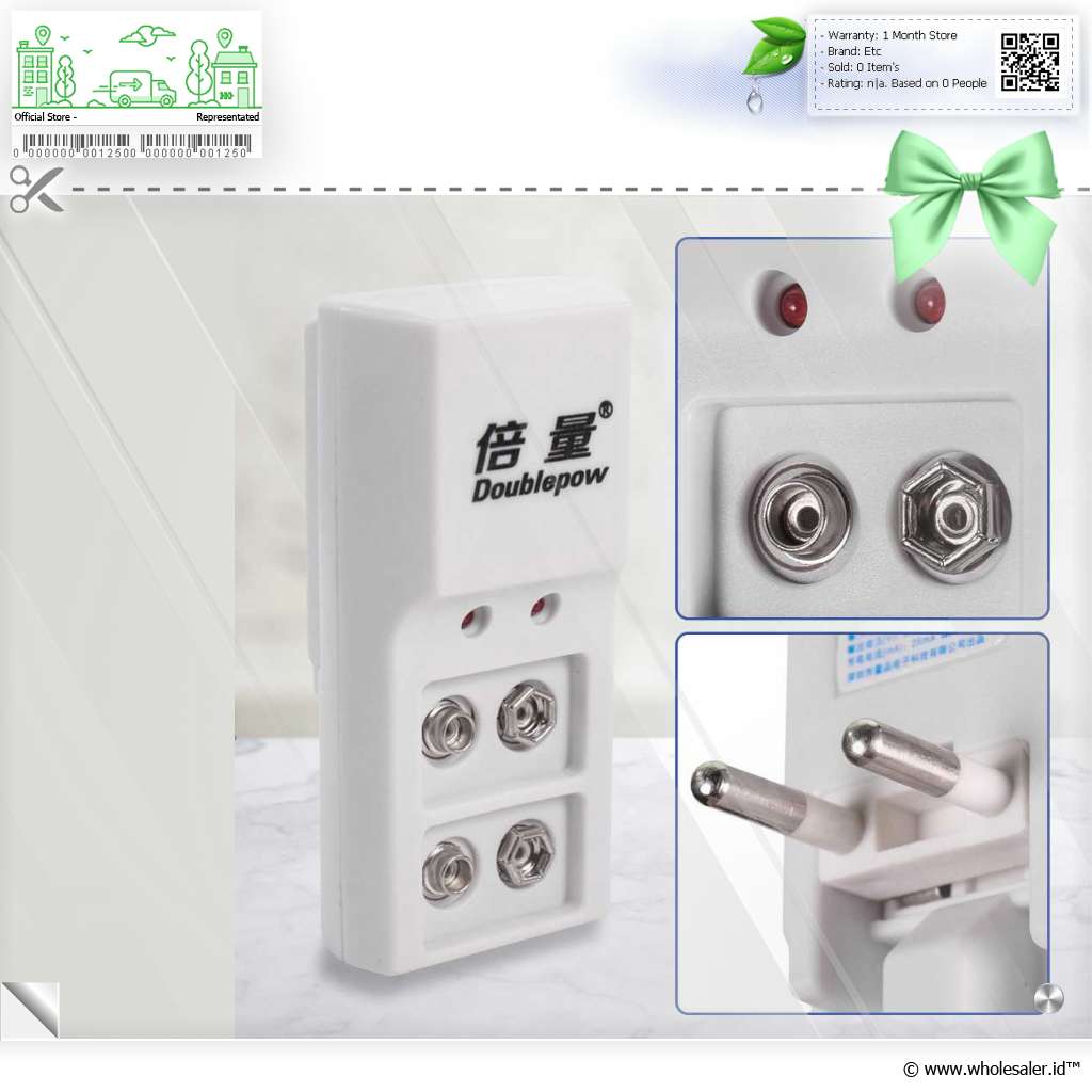 Butuh charger yang bisa mengisi daya banyak baterai sekaligusCharger baterai 2 slot dari Doublepow adalah pilihan yang tepat untuk Anda! Dengan 2 slot, Anda dapat mengisi baterai secara bersamaan. Kompatibel untuk mengisi ulang baterai jenis 9 V. Dilengkapi dengan lampu indikator LED untuk melakukan pemantauan saat mengisi ulang daya baterai.