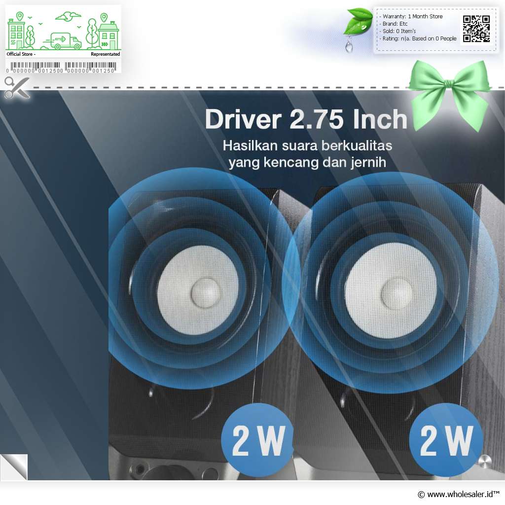 Suara Kencang dan Jernih Driver 2.75 Inch pada speaker mampu hasilkan suara jernih dengan output 4 W yang kencang. Cocok untuk memenuhi ruangan kecil dengan audio yang detail dan nyaman didengar sepanjang hari. |
