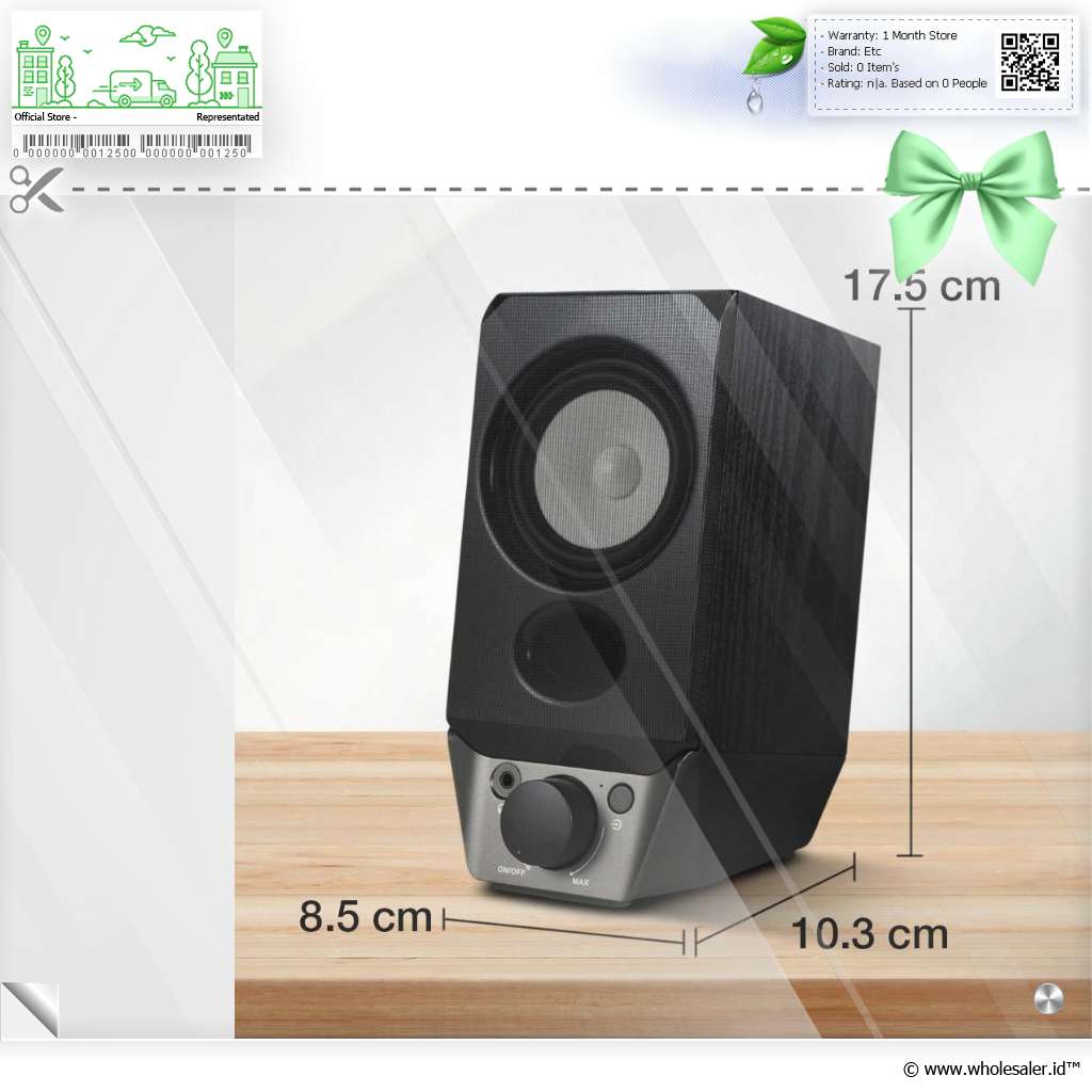 Dimensi | : | Speaker 8.5 x 17.5 x 10.3 mm Kabel AUX Sekitar 80 cm Kabel Koneksi Speaker Sekitar 2.2 M Kabel USB Sekitar 1.3 M |