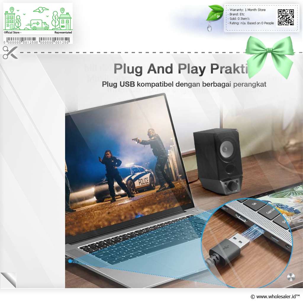 Plug And Play Praktis Sudah menggunakan sistem plug and play, cukup pasang plug USB pada port pada berbagai perangkat audio. |