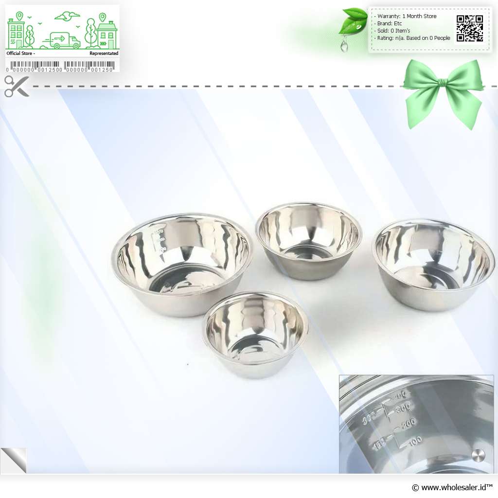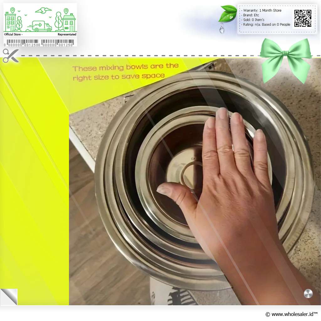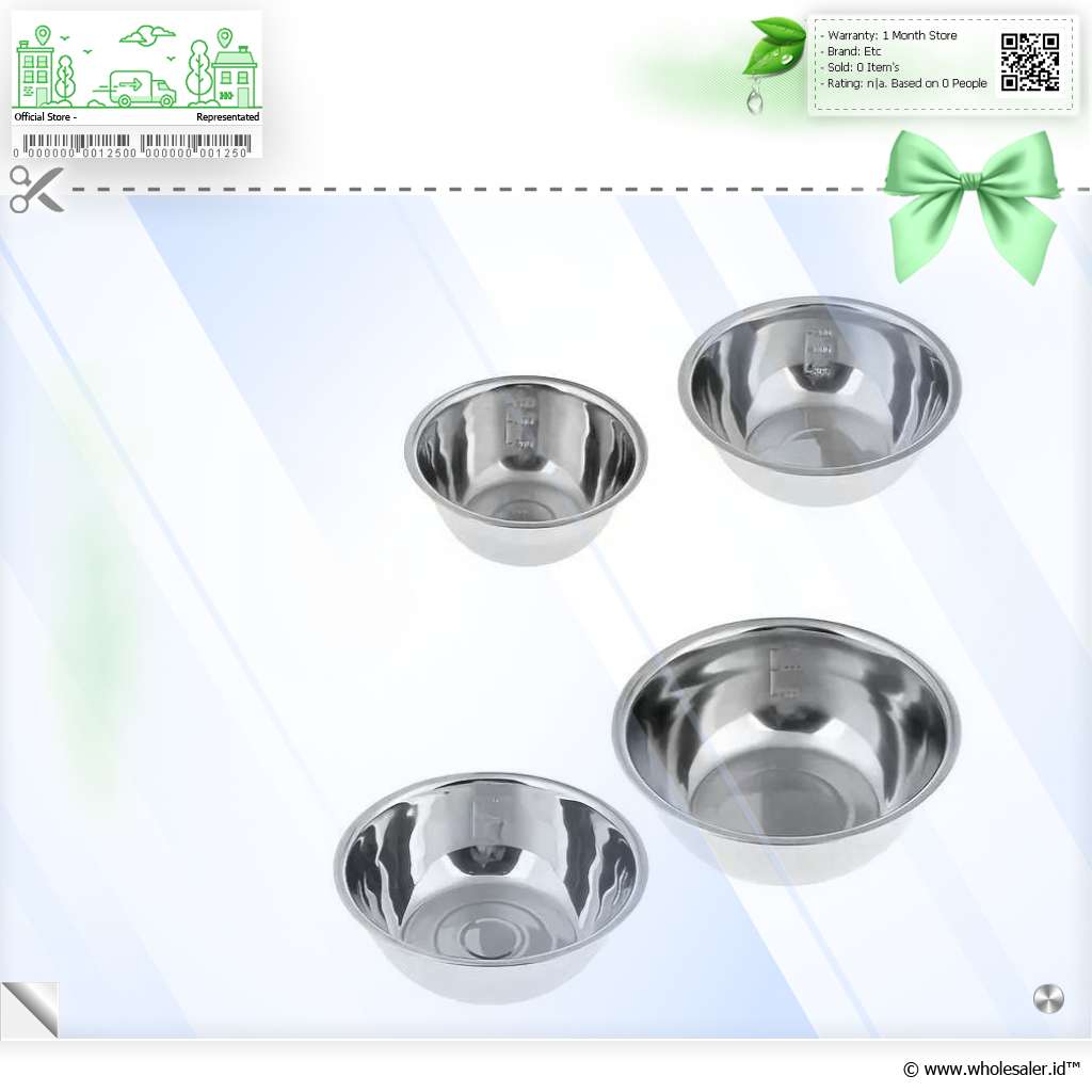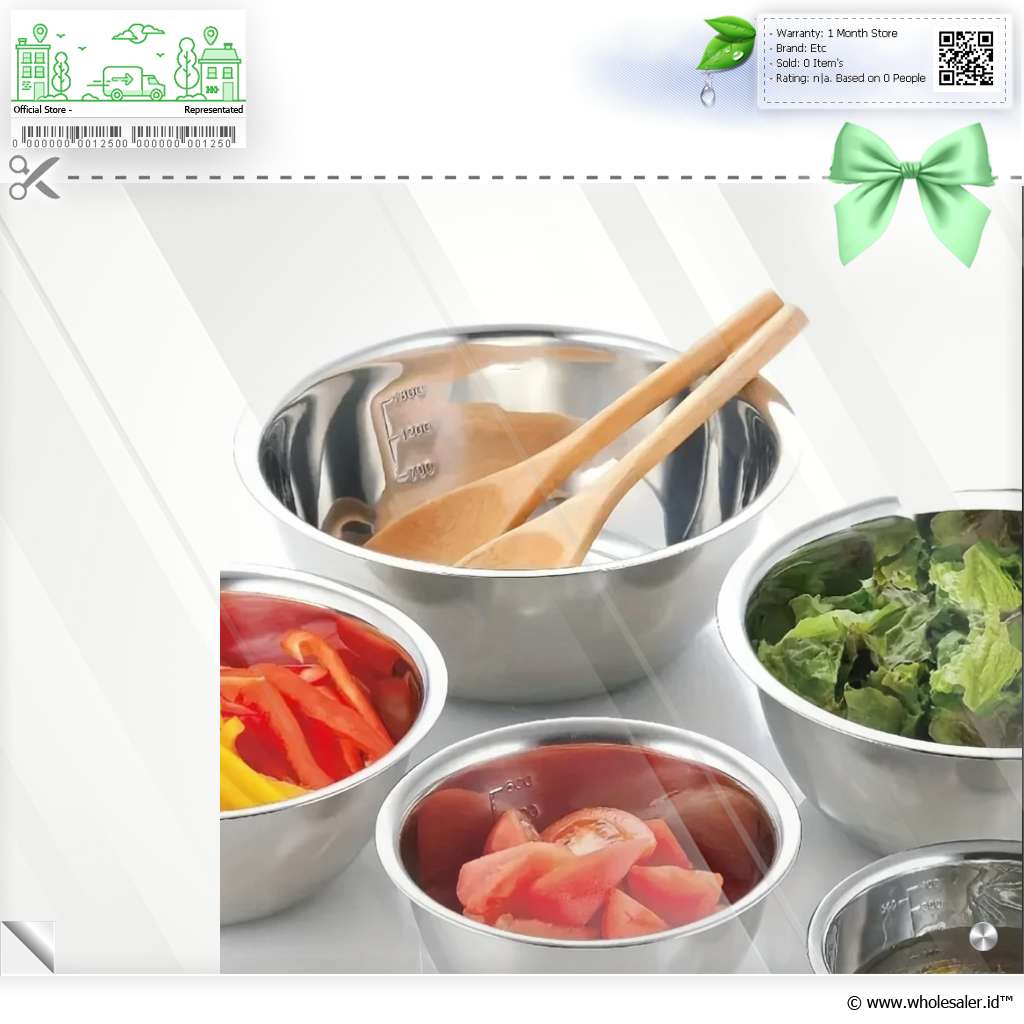 Mangkuk mixing adonan ini adalah alat serbaguna yang wajib ada di setiap dapur, sangat cocok untuk baking, memasak, atau sekadar menyajikan mi dan buah. Terbuat dari stainless steel 201 yang kokoh. Memiliki beberapa ukuran, yaitu 14 x 5.5 cm, 16 x 6.5 cm, 22 x 8 cm, dan 24 x 8.5 cm.
