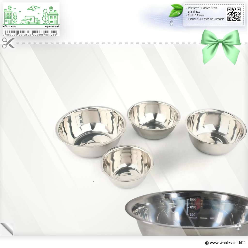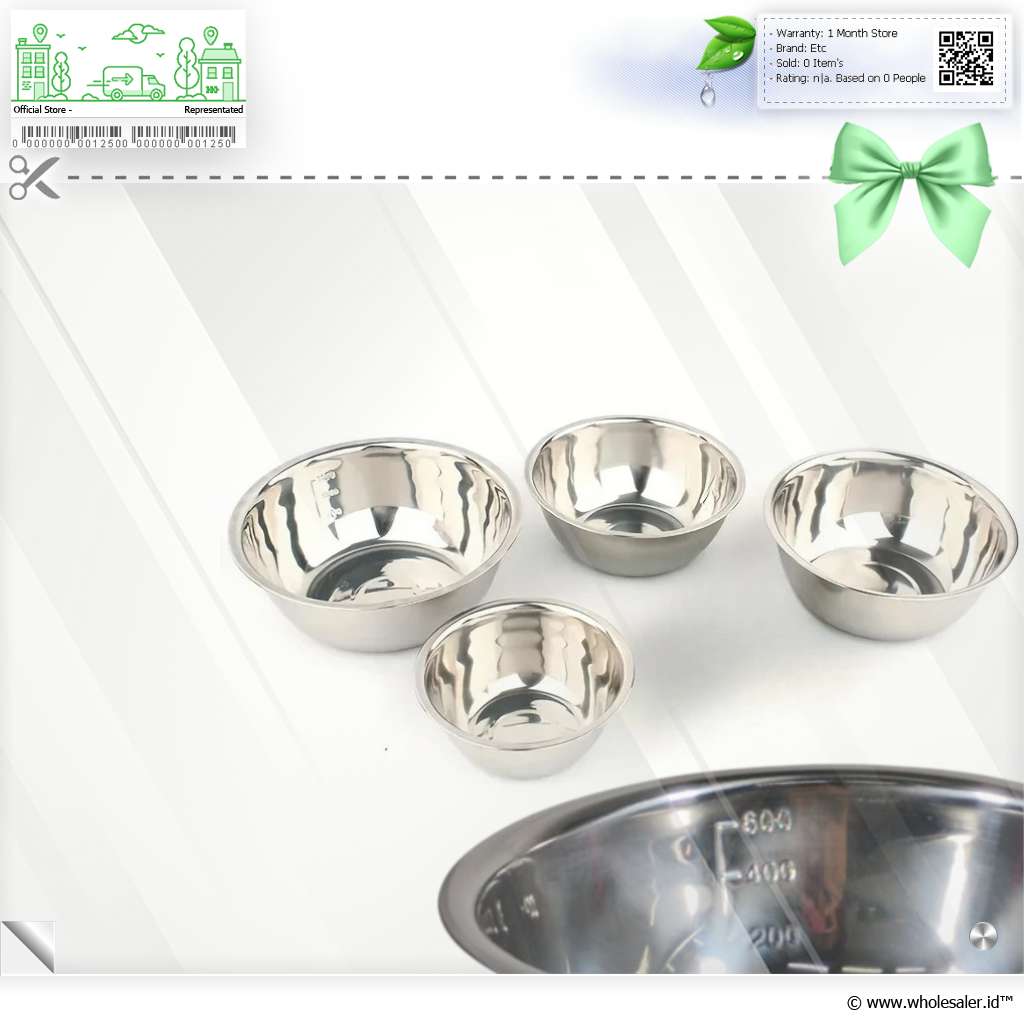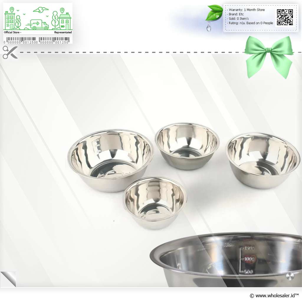 Mangkuk stainless steel 201 kokoh, anti karat, tersedia 4 ukuran fleksibel, serbaguna untuk adonan, masakan, hingga sajian. Satu wadah praktis untuk semua kebutuhan dapur!
