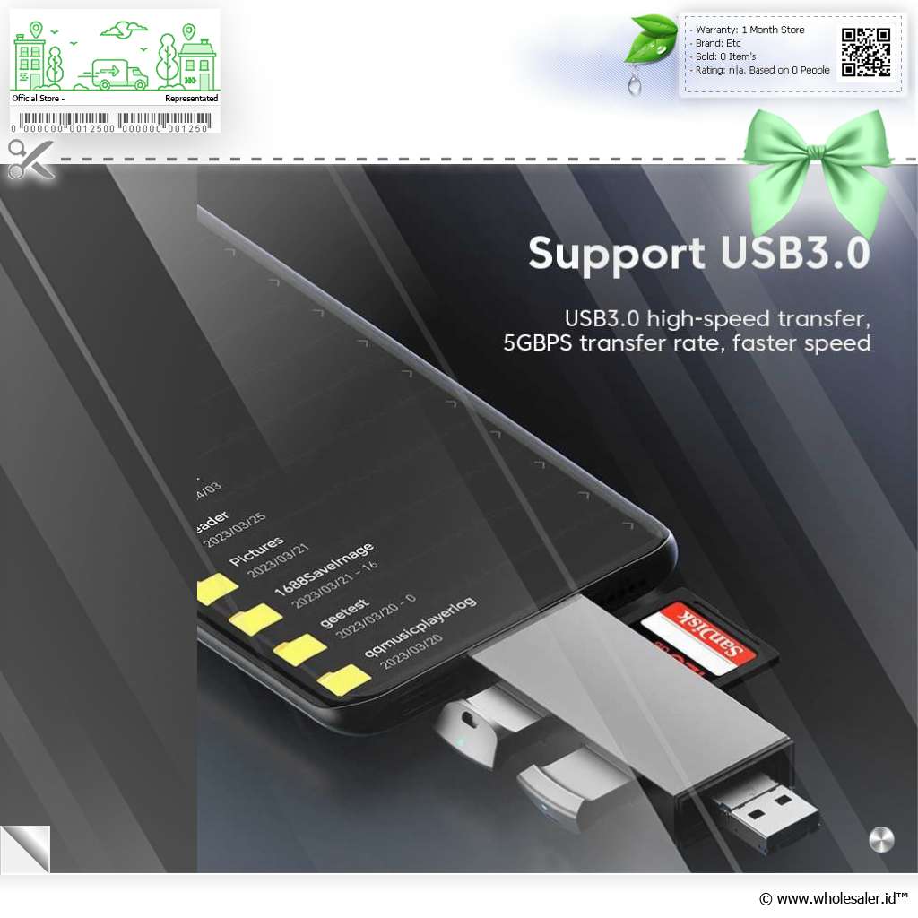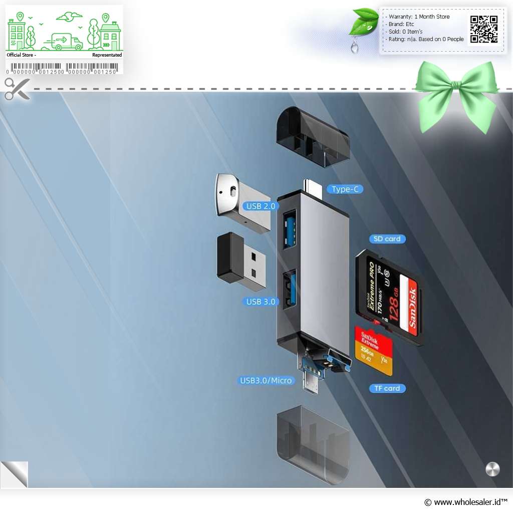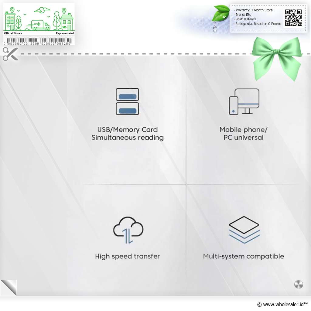 | Kompatibilitas Luas Tidak perlu instalasi rumit, cukup colokkan dan langsung gunakan. Dengan konektor USB, Type-C, dan micro USB, card reader ini kompatibel dengan laptop Windows & Mac, HP Android, tablet, kamera digital, hingga perangkat OTG. |