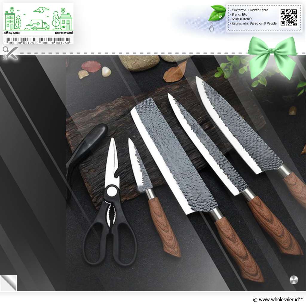 Satu set perlengkapan pisau dapur ini terdiri dari pisau dapur, daging, buah, roti, pengupas buah, dan sebuah gunting dapur. Dibuat khusus untuk keperluan dapur rumahan sehingga sangat tajam dan tidak mudah berkarat.