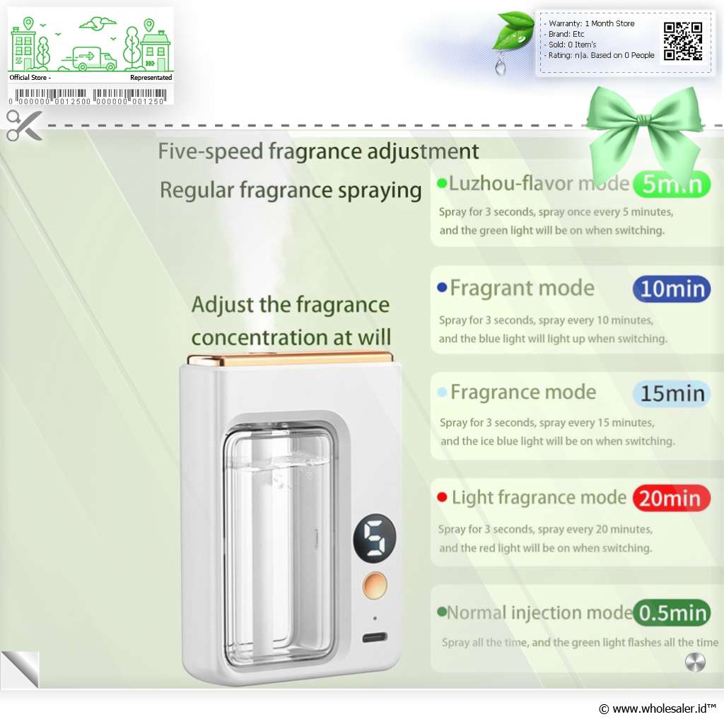 | Kontrol Aroma Dengan 5 Mode Bebas menentukan ritme penyemprotan aroma sesuai keinginan Anda. Dengan lima mode kecepatan yang dapat diatur, Anda bisa memilih seberapa sering diffuser menyemprot. |