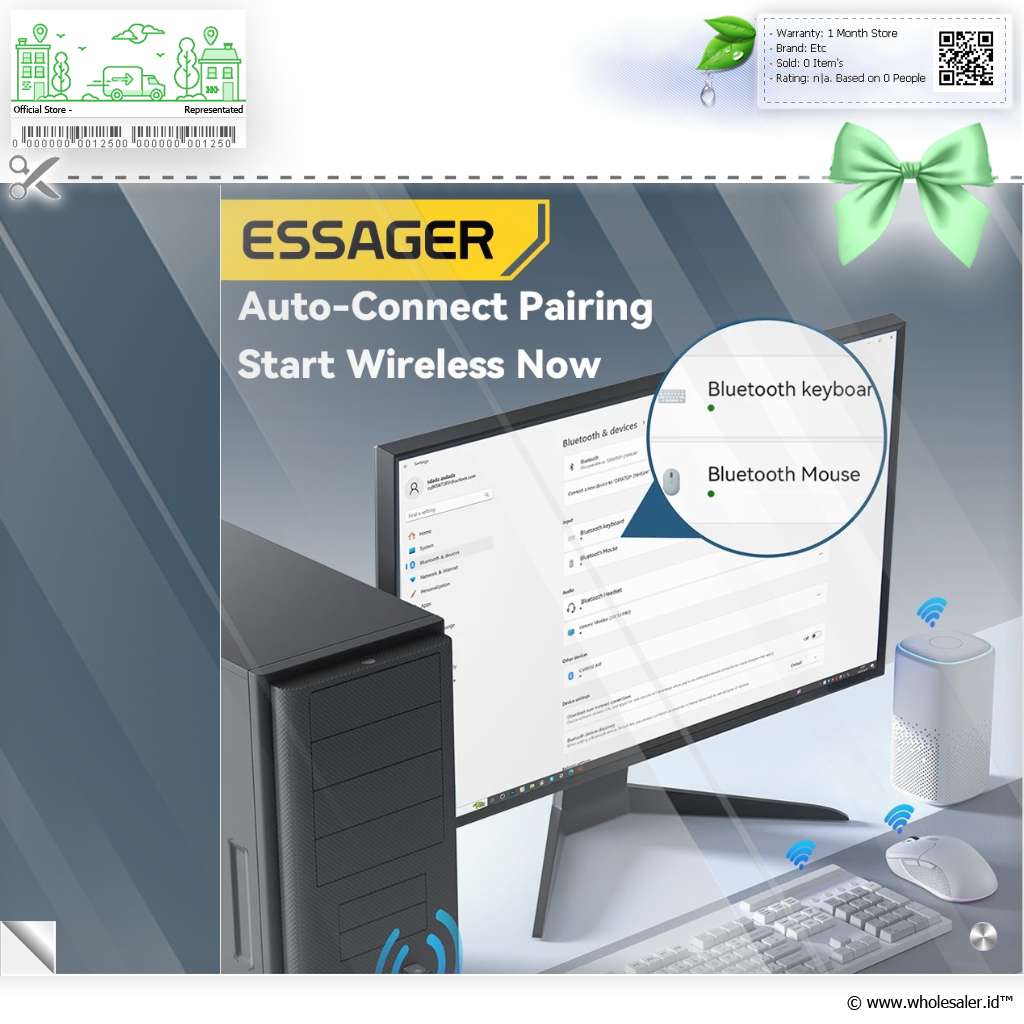 Tingkatkan konektivitas nirkabel PC atau laptop Anda dengan ESSAGER Bluetooth 5.4 Adapter, solusi cepat, mudah, dan bebas ribet untuk menambahkan kemampuan Bluetooth ke perangkat Anda. Dengan teknologi terkini Bluetooth 5.4, adapter ini mampu mendukung hingga 5 perangkat sekaligus, kompatibel dengan berbagai versi Windows tanpa instalasi driver. Didukung jangkauan transmisi hingga 20 M ke atas, ESSAGER memberikan pengalaman nirkabel yang lebih stabil, fleksibel, dan produktif.