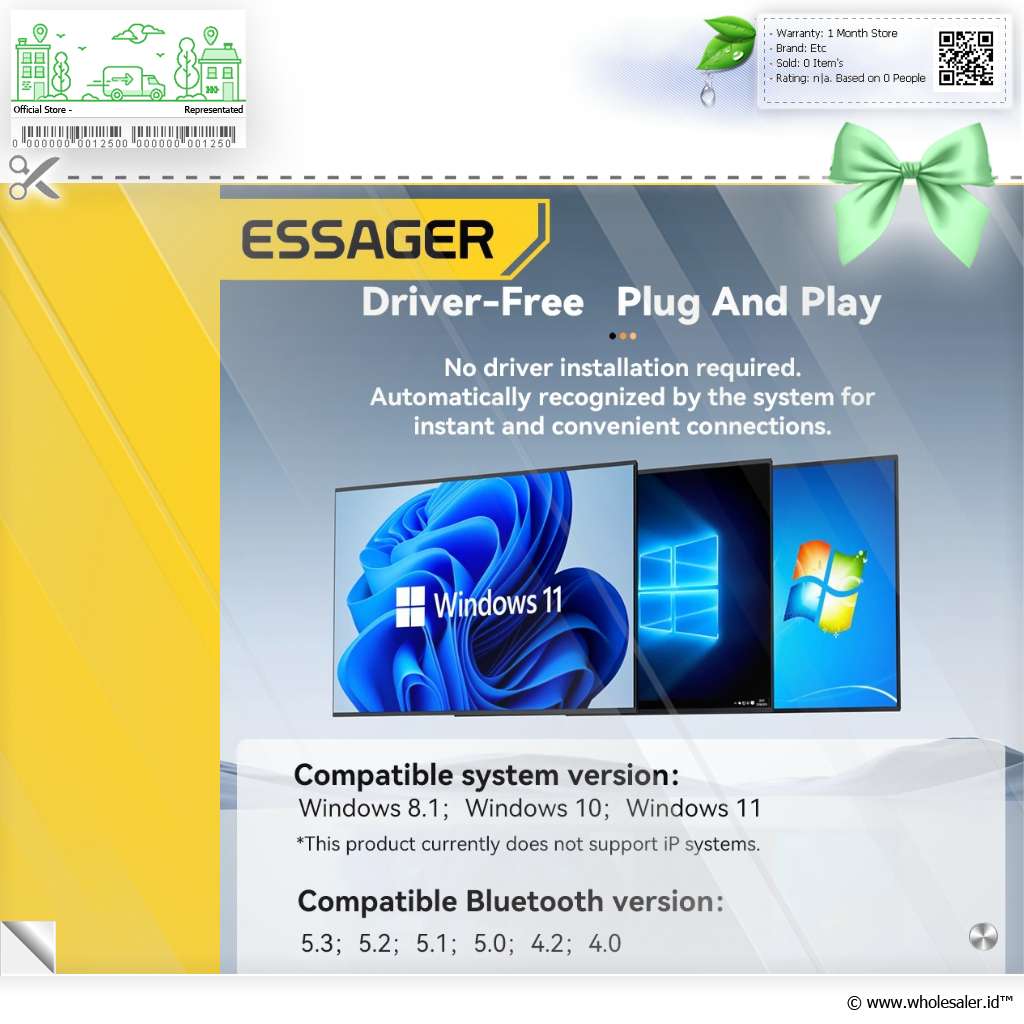 - 1 x ESSAGER Adaptor Bluetooth 5.4 Dongle PC Laptop for Windows 8.1/10/11 - ES-BT16