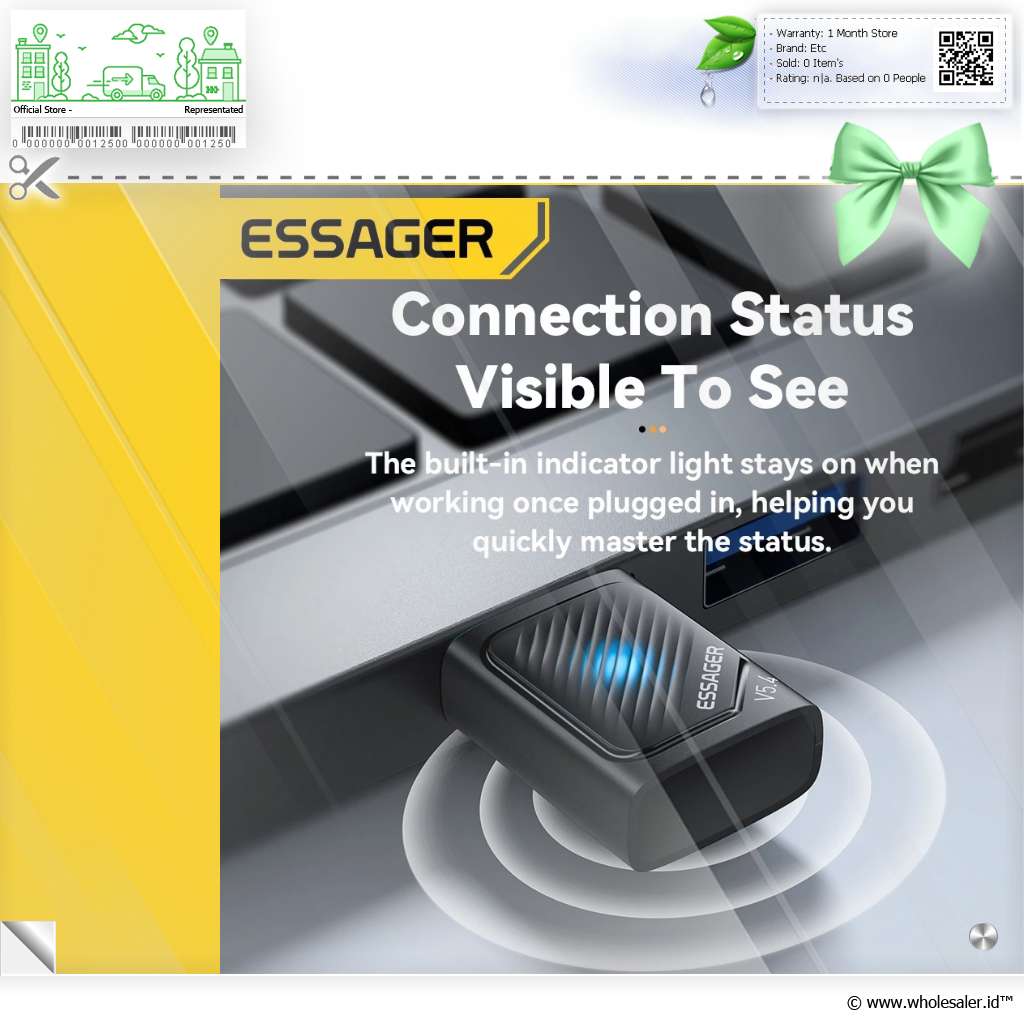 Informasi Produk ESSAGER Adaptor Bluetooth 5.4 Dongle PC Laptop for Windows 8.1/10/11 - ES-BT16