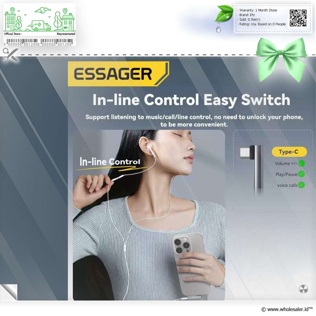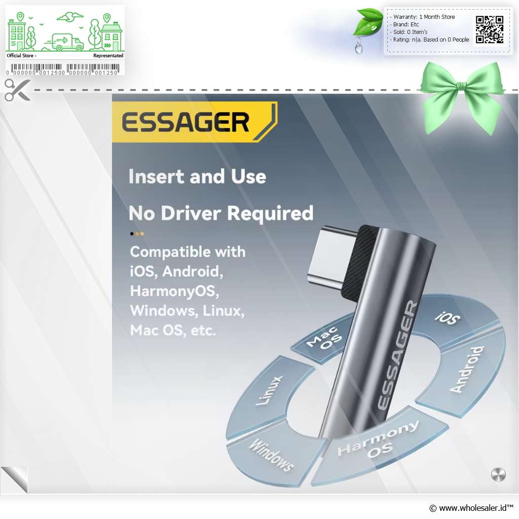 - 1 x ESSAGER Adaptor Jack Audio OTG Converter Type C Male to 3.5mm Female - EOTGT-ZY0G