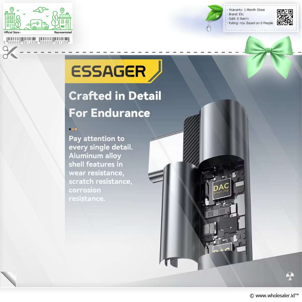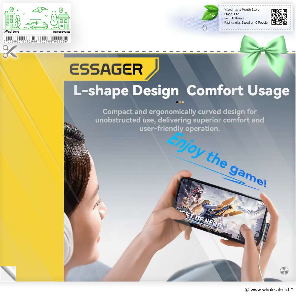 ESSAGER kembali menghadirkan solusi audio premium bagi pengguna smartphone modern melalui audio adapter Type C to 3.5 mm berbentuk L-Shape yang praktis dan ergonomis. Dilengkapi DAC digital decoding chip, adapter ini mampu menghasilkan kualitas suara Hi-Fi yang jernih, detail, dan stabil. Desain sudut 90 meningkatkan kenyamanan penggunaan, terutama saat bermain game, menonton film, atau mendengarkan musik sambil menggenggam perangkat.