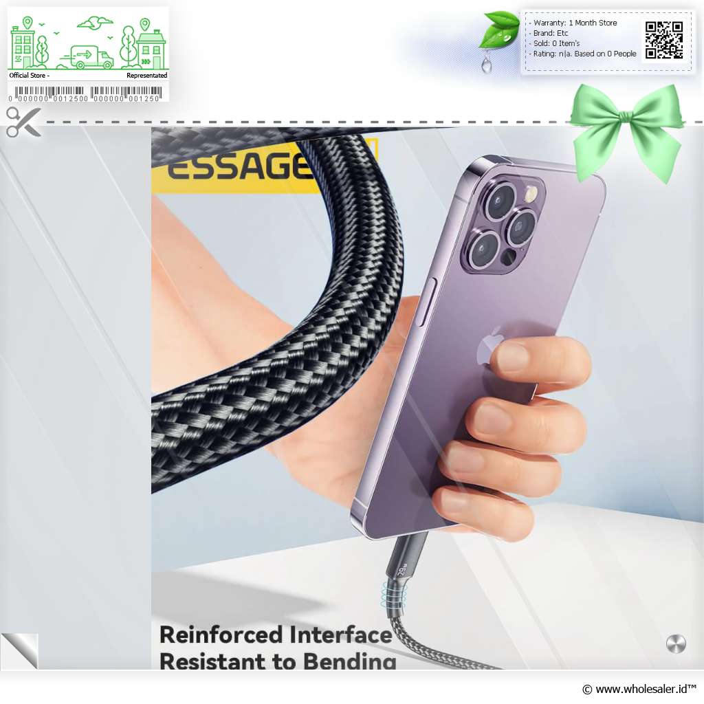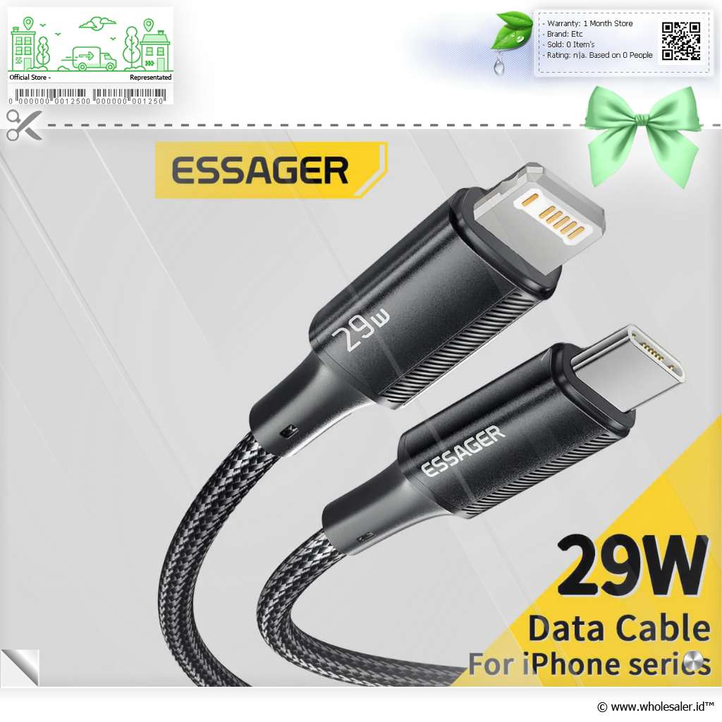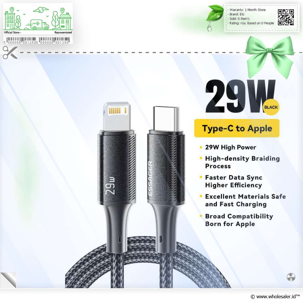 Kabel ESSAGER 29 W USB Type C to lightning dirancang khusus untuk iPhone dengan dukungan fast charging hingga 50% dalam 30 menit. Material braided premium membuatnya tahan lama dan anti kusut. Kompatibel luas, aman, serta mendukung transfer data cepat untuk pengalaman maksimal setiap hari.