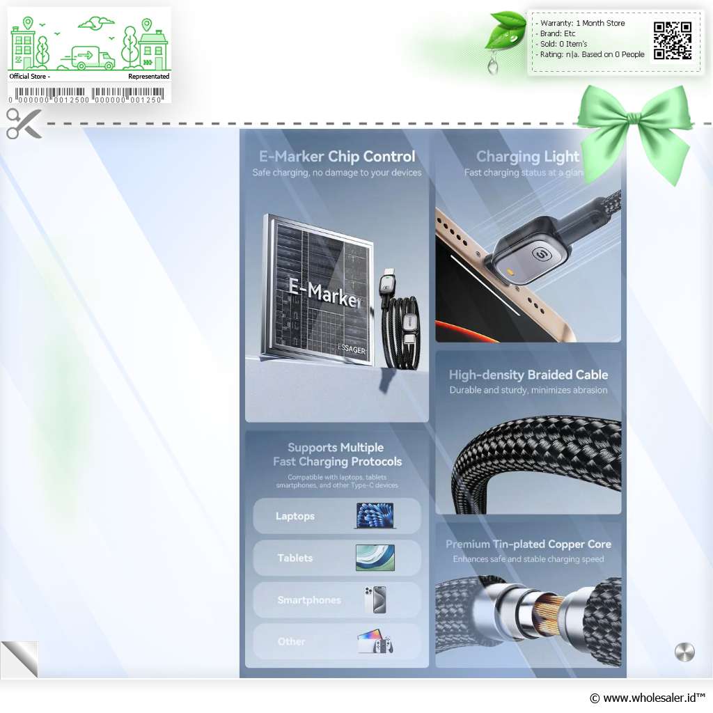 | Universal Compatibility Satu kabel untuk semua kebutuhan. Kompatibel dengan laptop, tablet, smartphone, hingga perangkat gaming USB Type C. |