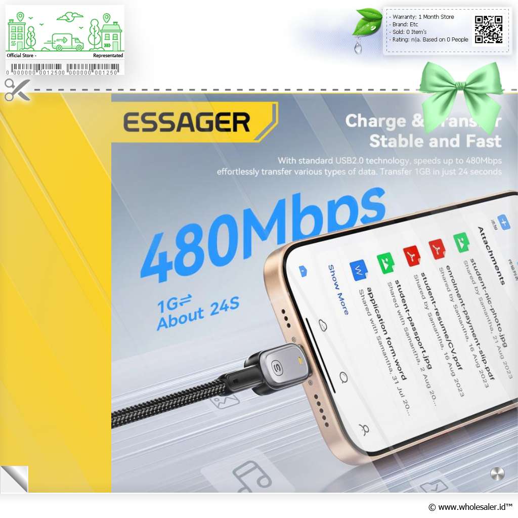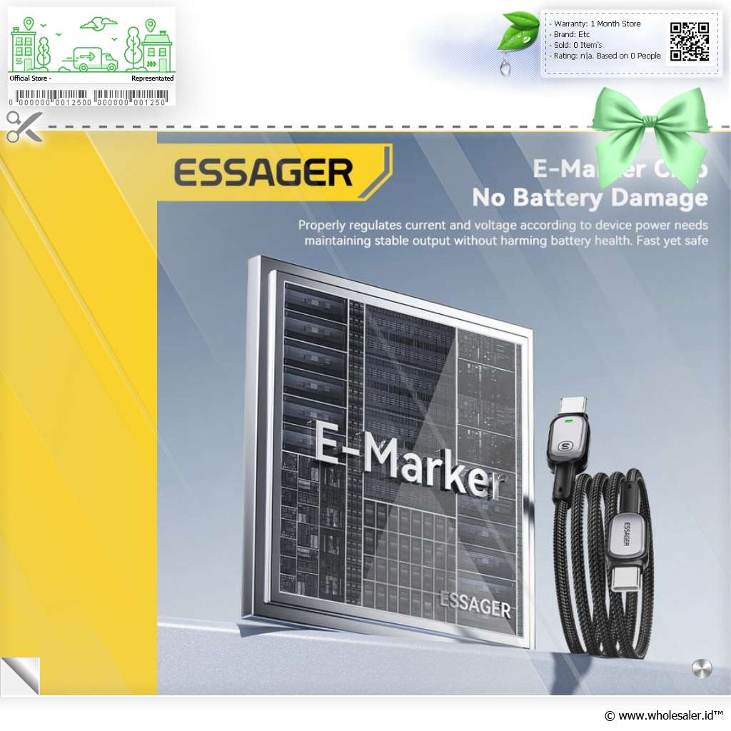 - 1 x ESSAGER Charging Cable USB Type C to USB Type C 1M 480Mbps 60W - EXCTT2-CZ0G-P