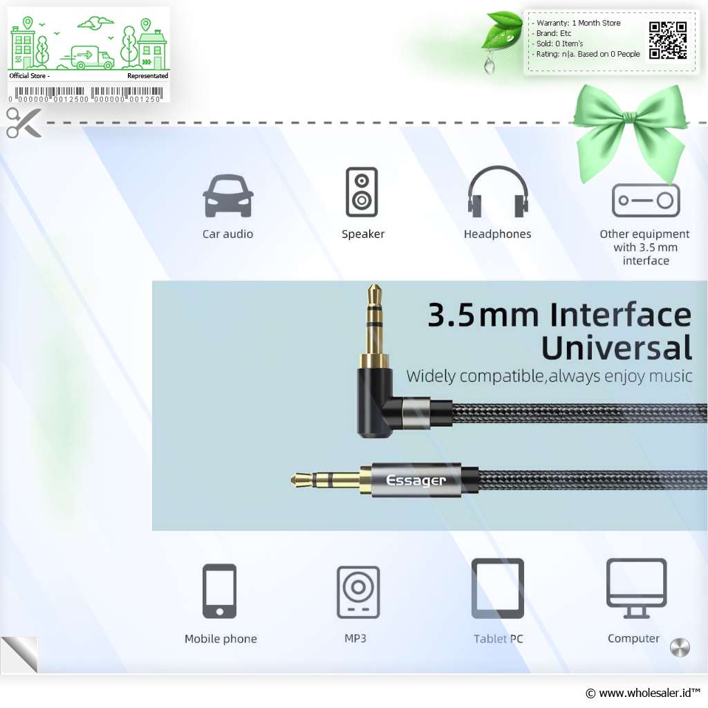 | Perluas Koneksi Audio ke Berbagai Perangkat Kabel AUX ESSAGER kompatibel dengan beragam perangkat yang menggunakan port jack 3.5 mm, seperti smartphone, laptop, PC, tablet, head unit mobil, dan speaker aktif. Anda cukup menghubungkan kedua ujung kabel ke input dan output perangkat untuk menikmati audio tanpa delay atau distorsi. Solusi ideal untuk kebutuhan hiburan, pekerjaan, atau audio mobil Anda. |