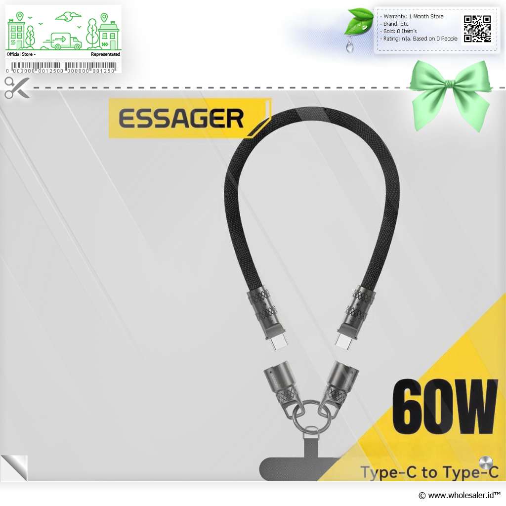 Informasi Produk ESSAGER Kabel Data 2in1 USB Type C to Type C Fast Charging PD 60W - JCB01