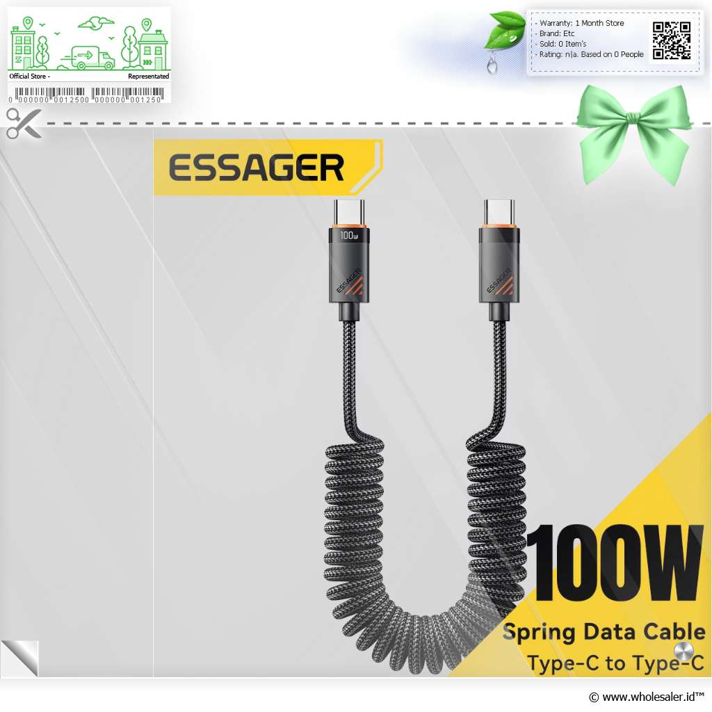 Nikmati pengisian cepat dan efisien dengan ESSAGER 100 W Spring Cable, kabel data spiral yang dirancang dengan performa tinggi dan daya tahan luar biasa. Dengan material premium, desain ergonomis, serta dukungan chip pintar E-Marker, kabel ini menjadi pilihan sempurna untuk pengisian daya maupun transfer data di rumah, kantor, atau mobil.
