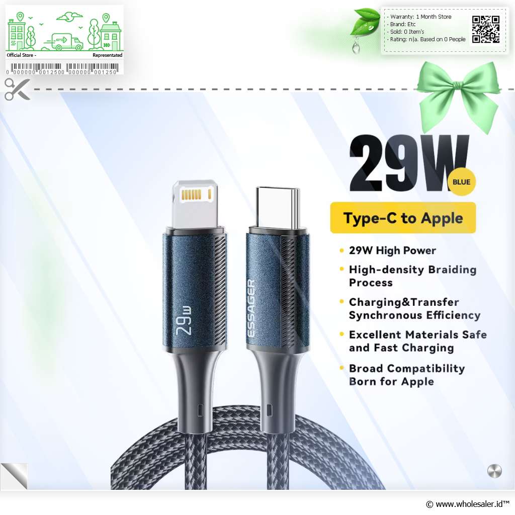 Informasi Produk ESSAGER Kabel Data USB Charging Type C to Lightning 1M 29W - EXCTL-JJ03-P