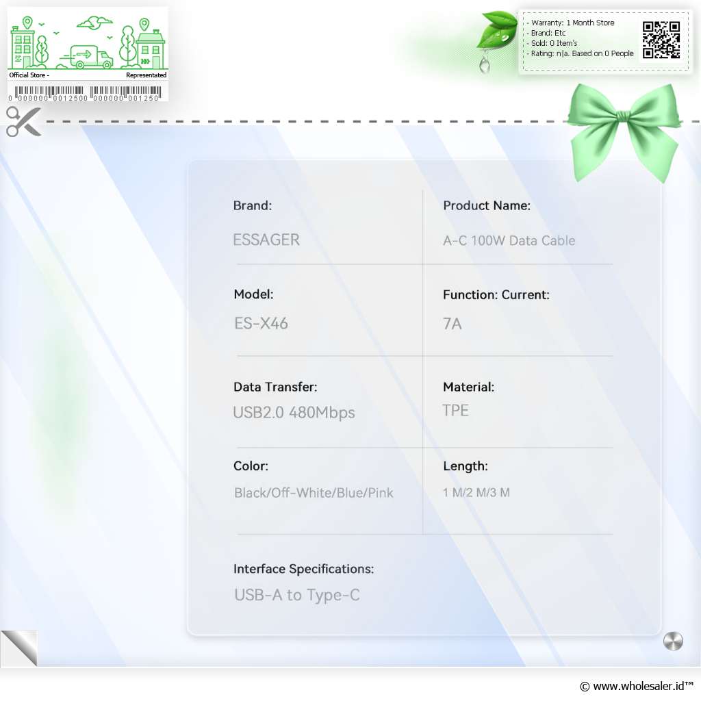 - 1 x ESSAGER Kabel Data USB Type C Multifungsi Fast Charging 7A 100W - ES-X46