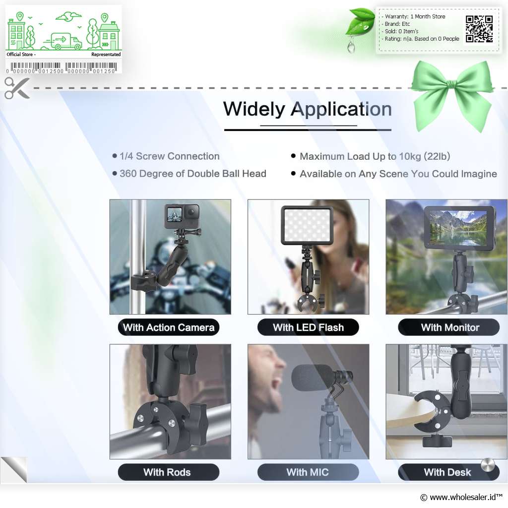 | Kompatibilitas Luas Clamp holder camera bisa Anda gunakan untuk banyak jenis merk dan model sepeda motor, sepeda, hingga ATV. Menggunakan ulir dengan ukuran 1/4 Inch yang merupakan standar universal sehingga Anda bisa memasang berbagai merk kamera aksi atau aksesori kamera lainnya seperti lampu, monitor, dan lainnya. |