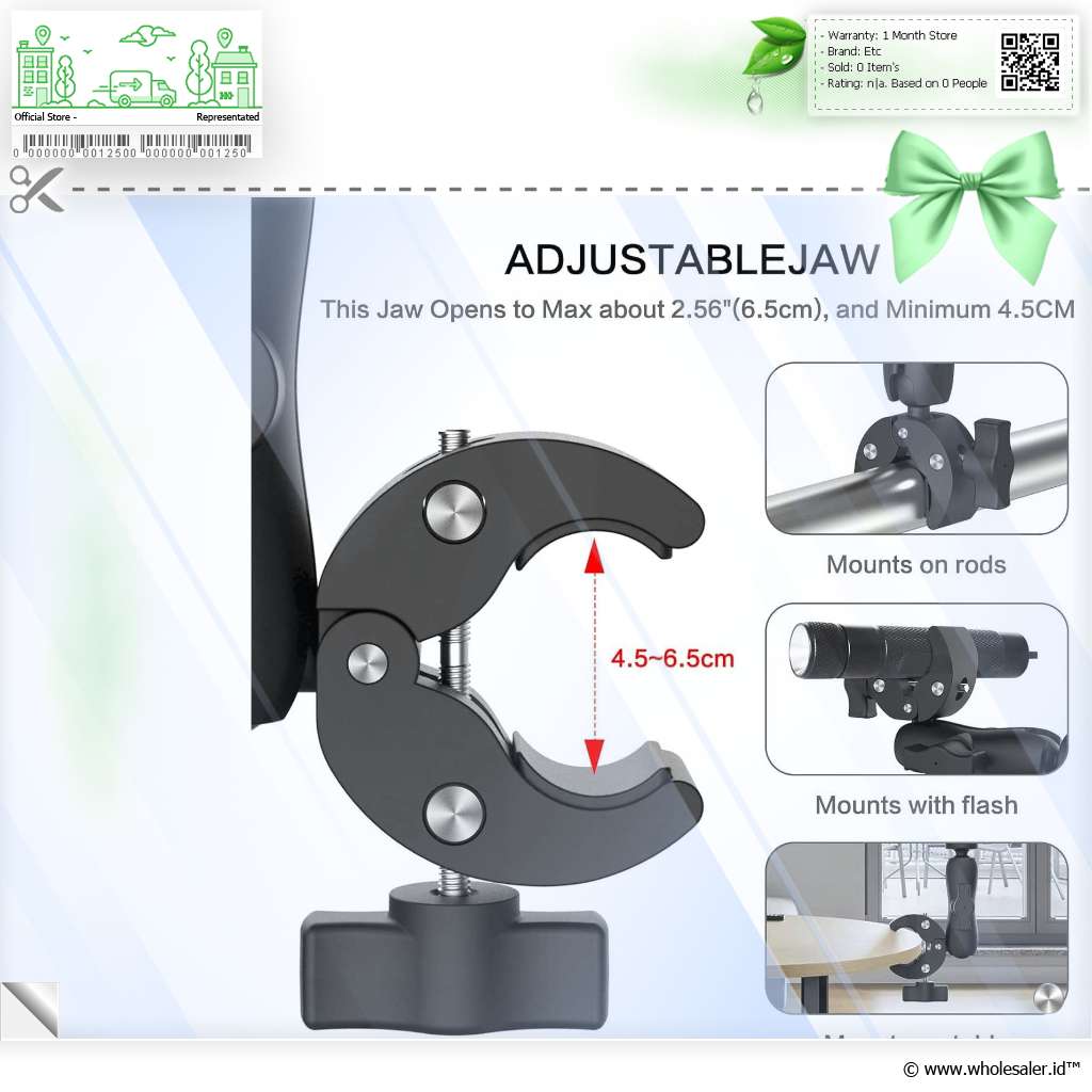 | Dimensi | : | Tinggi 18 cm Clamp 4.5-6.5 cm Mount 3 cm |