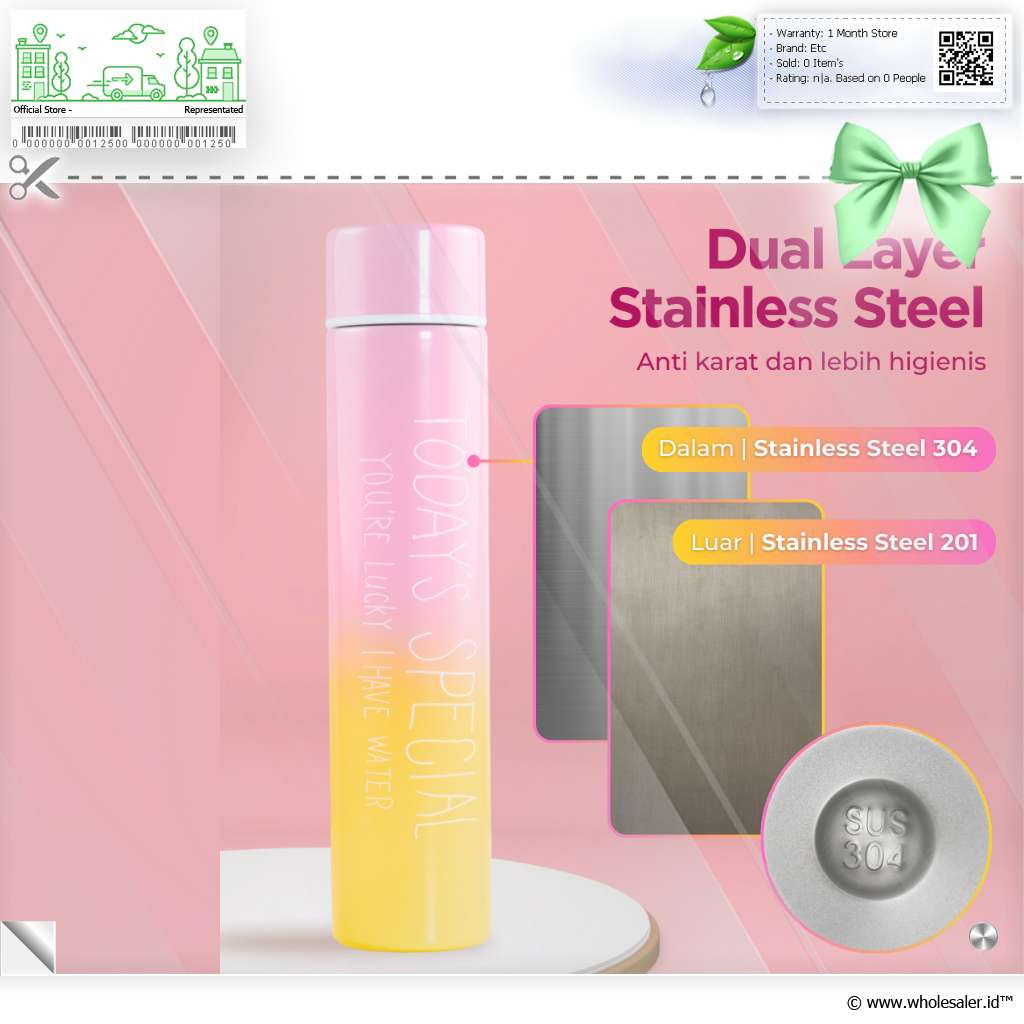 Jaga Suhu Tetap Stabil Kombinasi bahan stainless steel dan tutup botol dengan segel silikon double ring memastikan suhu minuman tetap stabil. Praktis nikmati minuman hangat atau dingin kapan saja. |
