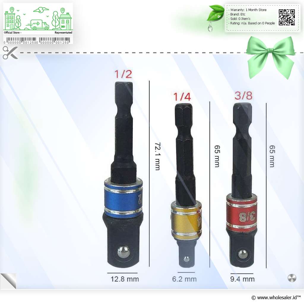 Informasi Produk FEIMING Mata Bor Elektrik Adapter Extension Bits Hex 1/4 3/8 1/2 3 PCS - BD003