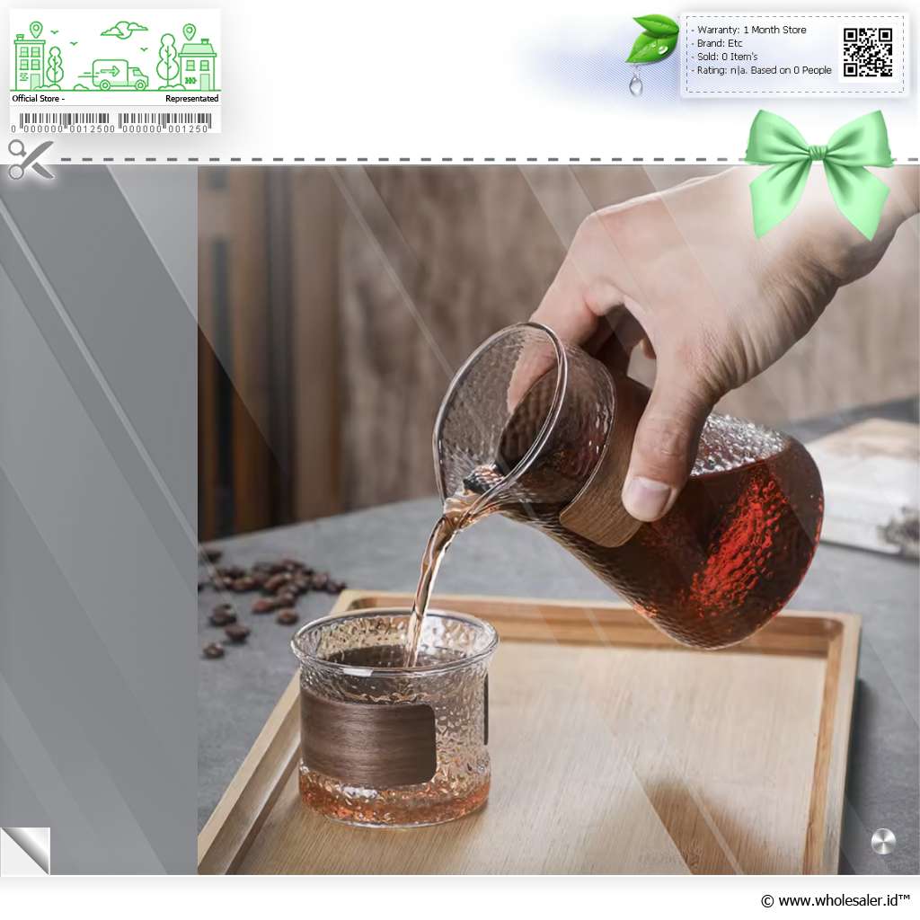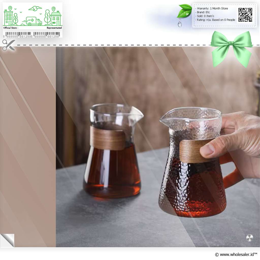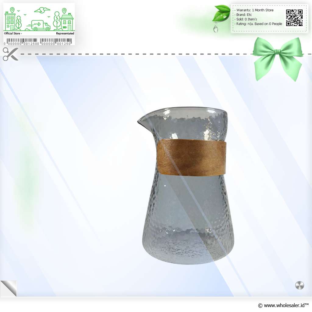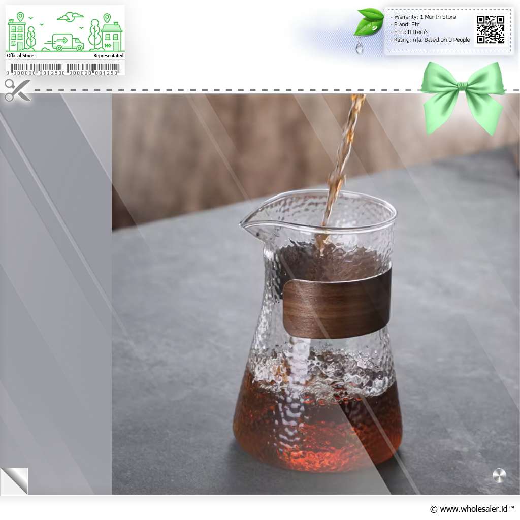 Carafe kaca borosilikat 500 ml dengan tekstur hammered elegan, cincin kayu anti-panas, dan desain ergonomis. Cocok untuk seduhan manual bergaya Jepang, estetis, tahan panas, dan ideal untuk barista rumahan.