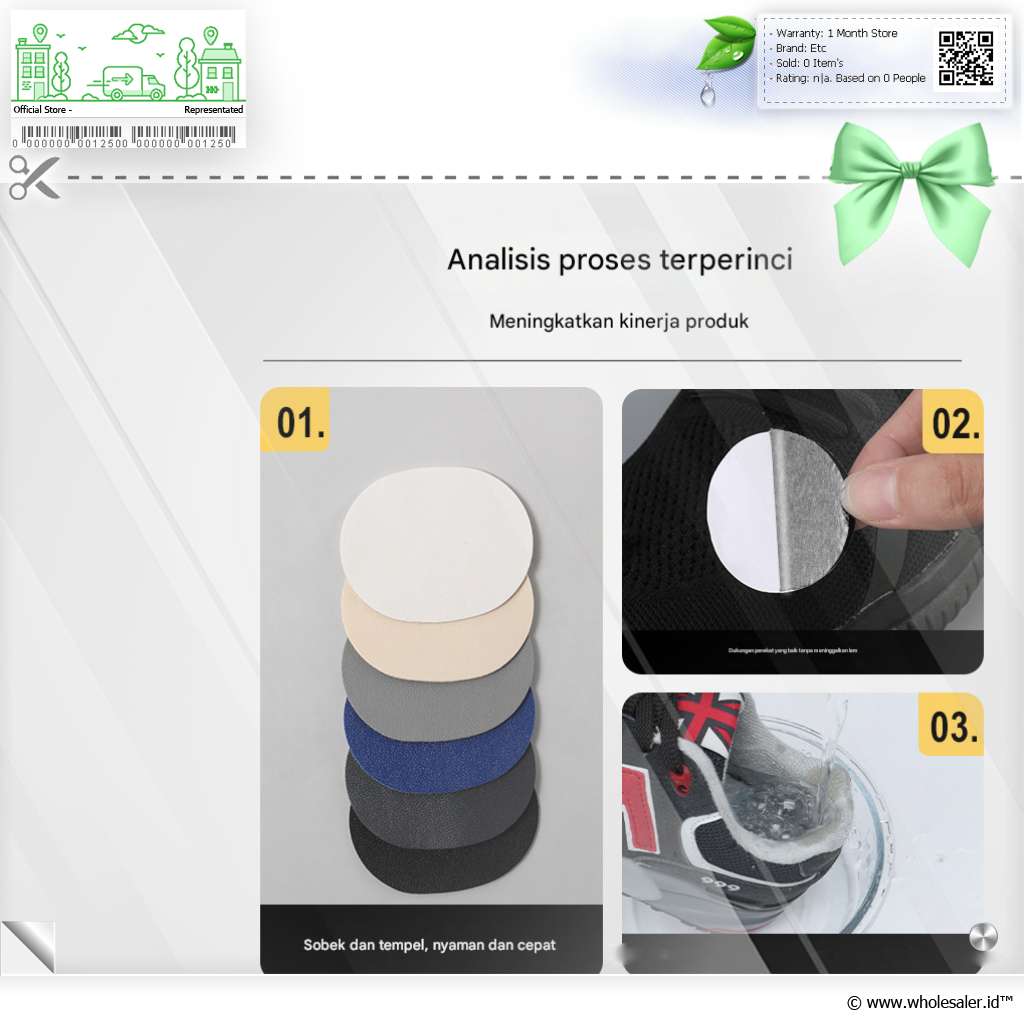 | Kompatibel dengan Berbagai Bahan Sepatu Patch ini dirancang agar dapat diaplikasikan ke sepatu yang terbuat dari bahan cloth (kain), mesh, dan PU (polyurethane). Jadi, apakah sepatumu berbahan ringan seperti mesh untuk olahraga/lari, atau bahan lebih padat seperti PU dan kain, patch ini tetap dapat melekat dengan baik, memberikan solusi serbaguna untuk berbagai jenis sepatu. |
