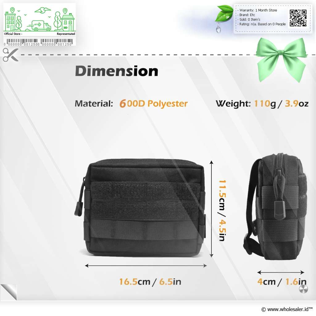 Sistem MOLLE yang Praktis dan Modular Tas EDC dilengkapi dengan sistem MOLLE (Modular Lightweight Load-carrying Equipment) atau velcro di bagian belakang, memungkinkan Anda memasangkannya pada sabuk, ransel, rompi taktis, atau perlengkapan militer lainnya. Fitur ini memberikan fleksibilitas tinggi bagi pengguna yang membutuhkan efisiensi dan mobilitas dalam membawa perlengkapan di lapangan. |