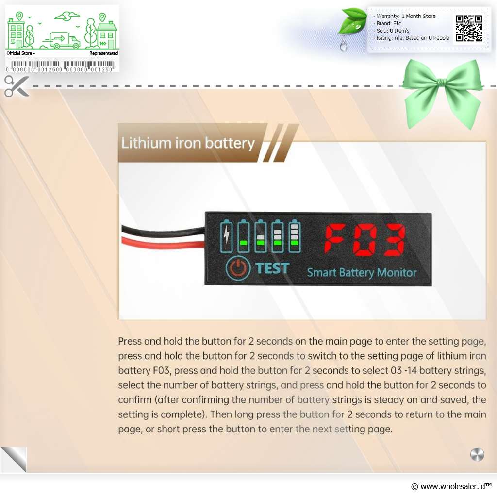 |  Periksa Kapasitas Lebih Mudah  Indikator dari Gaqqee mampu membaca dan menampilkan kapasitas serta tegangan baterai secara akurat. Cocok untuk berbagai aplikasi seperti baterai rechargeable, baterai sepeda listrik, solar panel, UPS, kendaraan listrik, dan sistem daya portabel.  |