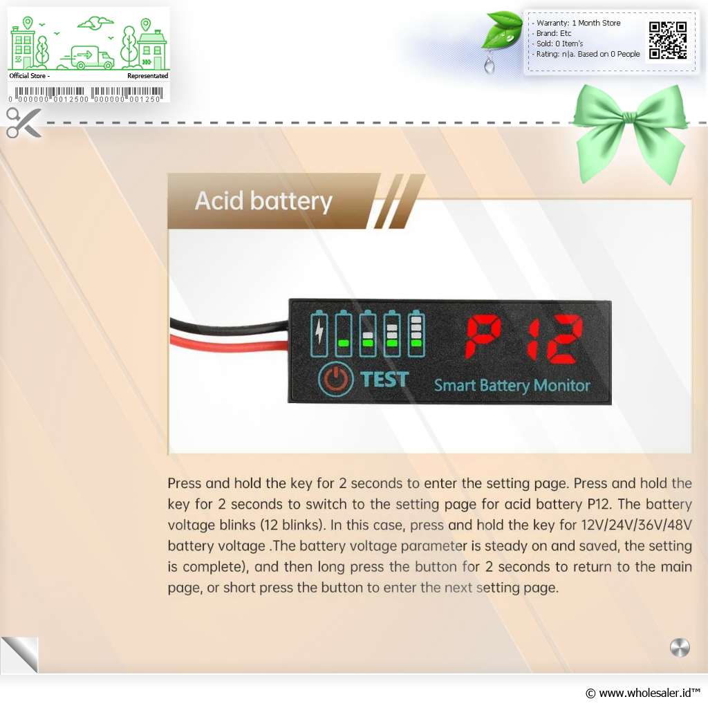 Informasi Produk Gaqqee Indikator Kapasitas Baterai LED Battery Capacity Voltmeter - GQ-24