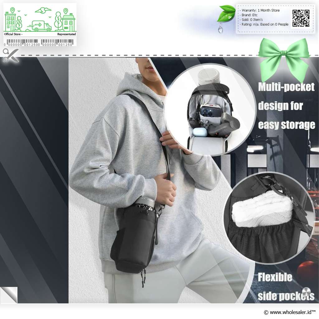 | Kompartemen Tambahan Fungsional Tak hanya bisa menyimpan botol saja, tas botol juga dilengkapi dengan kompartemen tambahan yang luas di bagian belakang. Anda bisa menggunakannya untuk menyimpan dompet, ponsel, atau barang lainnya. Dilengkapi dengan ritsleting untuk memastikan keamanannya saat dibawa. |