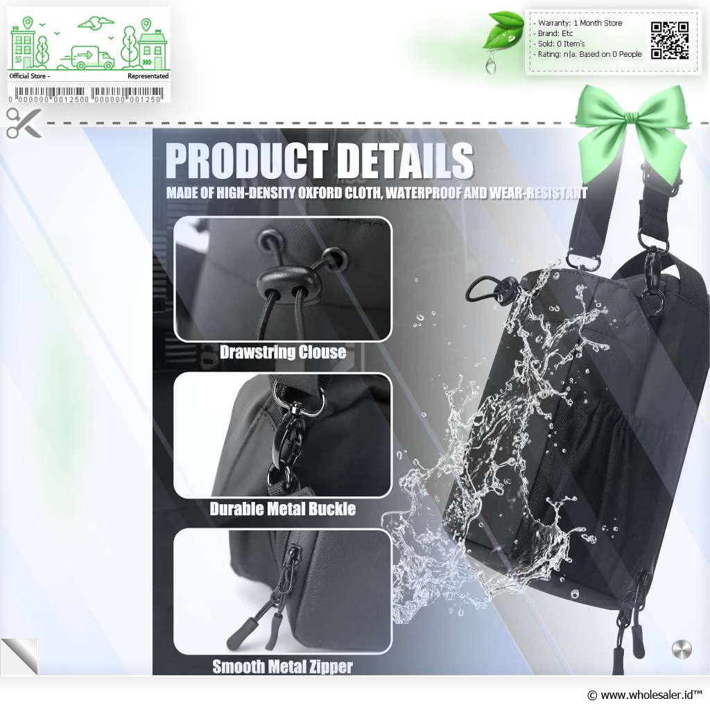 | Material Tahan Suhu Minuman Bagian luar tas botol minum terbuat dari material yang tahan air, tahan gesekan, dan tahan lama. |