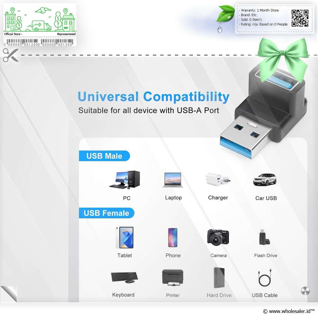 | USB Port Bentuk L Konverter ini memiliki bentuk L yang memudahkan Anda untuk menghubungkan perangkat USB ke laptop atau PC Anda. Desain ini cocok digunakan jika posisi port USB Anda sulit dijangkau. |