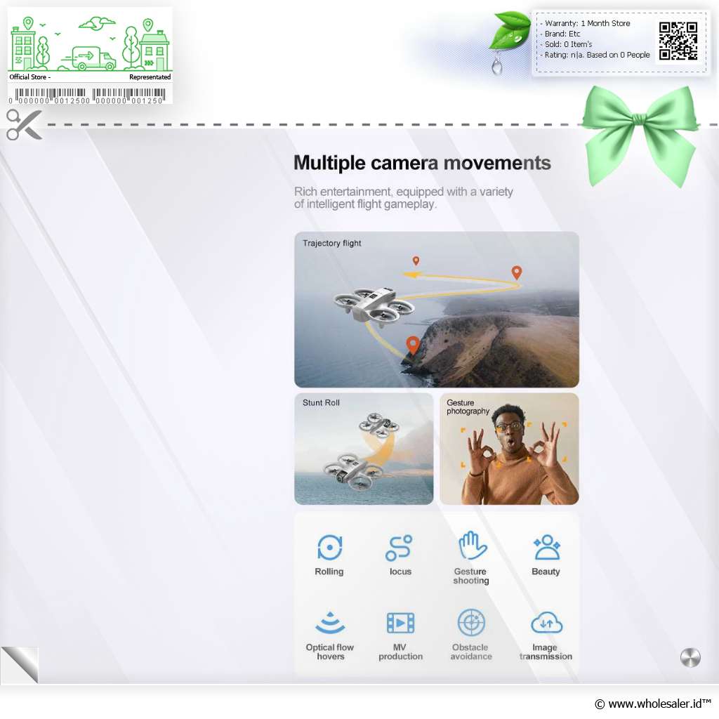 | Hasil Gambar Terbaik dengan 4K HD Dual Camera Anda bisa mendapatkan kualitas gambar dan video dengan resolusi 4 kali lebih bagus dari Full HD karena dilengkapi dengan kamera 4K ESC 180° yang dapat bergerak ke atas maupun ke bawah. Kombinasi keduanya memungkinkan Anda merekam dari berbagai sudut, mulai dari low-angle cinematic hingga upward shooting yang jarang dimiliki drone lain di kelasnya. |