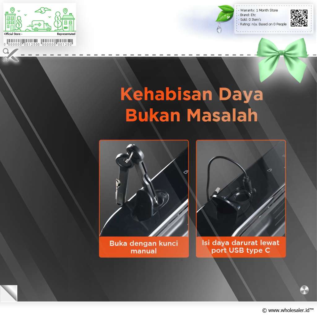 | Lain-lain | : | Kapasitas Fingerprint 50 Kapasitas Password 30 Kapasitas Kartu Akses 50 Port Daya Darurat USB Type C Voltase Port Daya Darurat 5 V Koneksi WiFi |