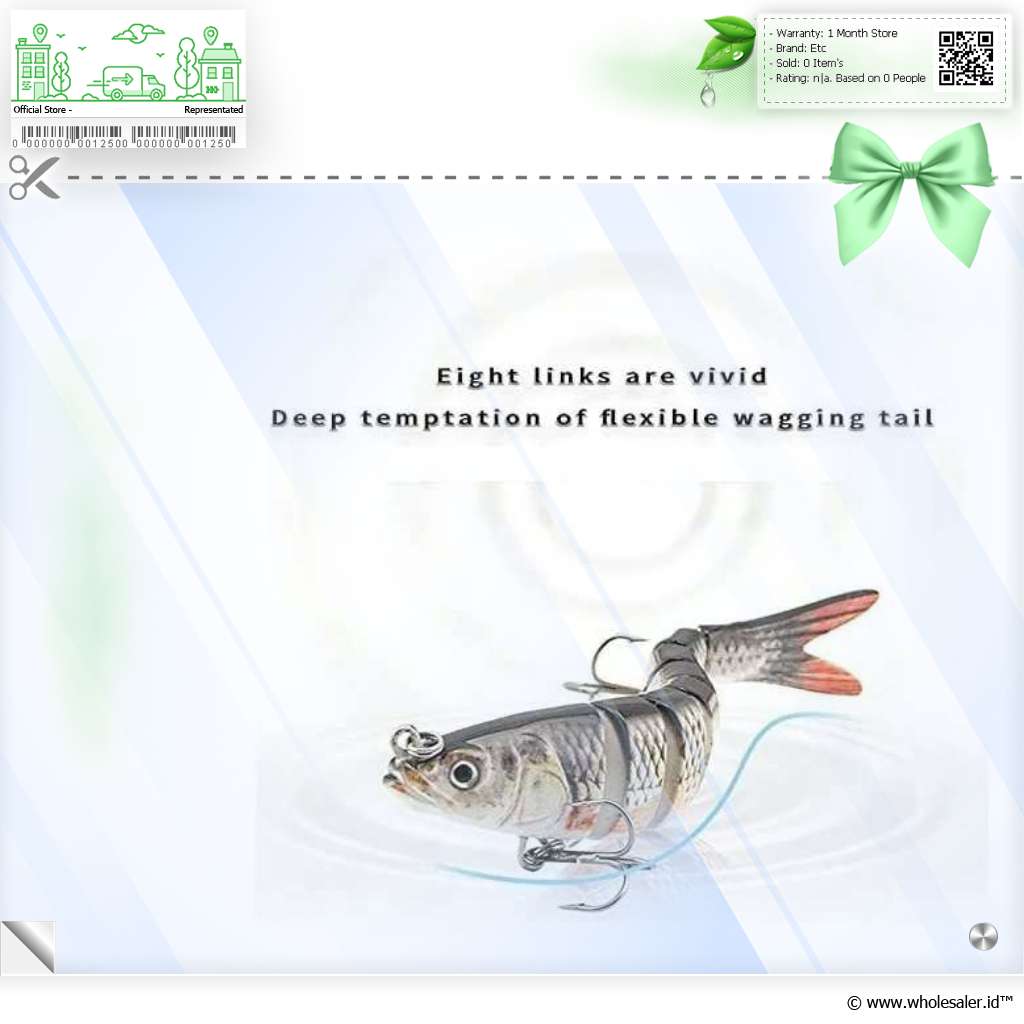 | Desain Tubuh 8 Segmen yang Realistis Didesain dengan sambungan fleksibel yang menghasilkan gerakan renang sangat alami menyerupai ikan kecil. Gerakan ini efektif menarik perhatian ikan predator untuk menyerang. Umpan ini membuat pengalaman memancing Anda terasa lebih nyata dan menantang. |