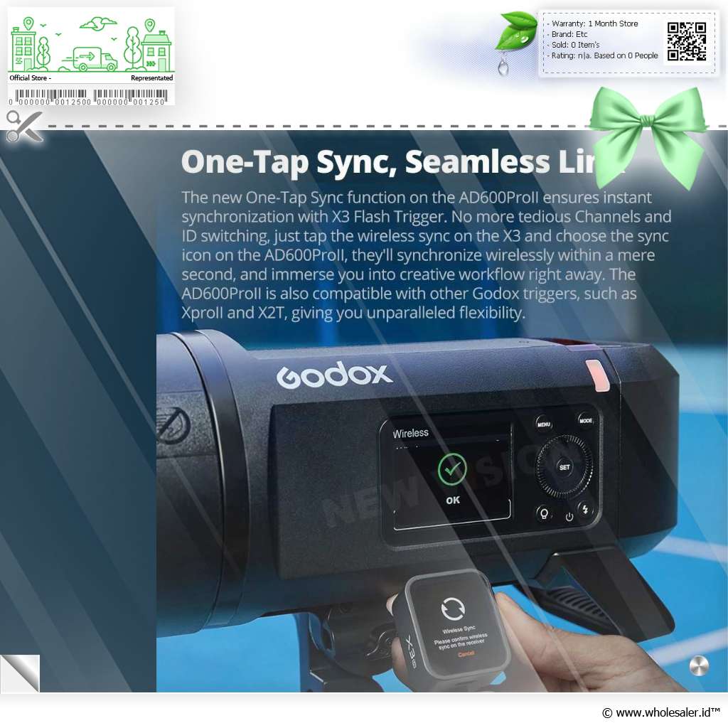 Sinkronisasi Sekali Sentuh Hadir dengan fitur One-Tap Sync, AD600ProII dapat langsung tersinkronisasi dengan X3 trigger hanya dengan satu tombol. Tak perlu repot mengganti channel atau ID secara manual ,cukup tekan dan Anda siap memotret dengan efisiensi tinggi. |