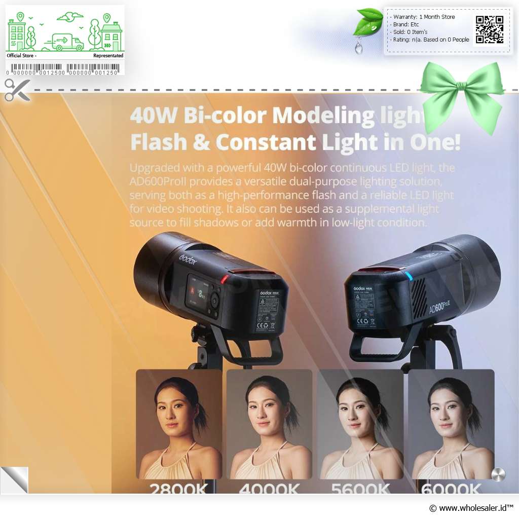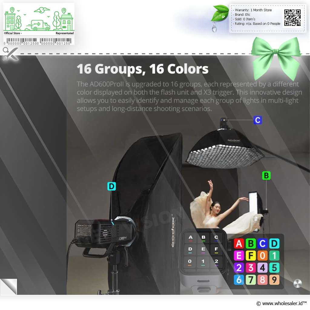 Maksimalkan hasil fotografi Anda dengan menggunakan flash camera dari Godox. Dengan teknologi kecepatan sinkronisasi hingga 1/8000 detik, dan sistem nirkabel 2.4 GHz, one tap sync, quick fire recycling, group indicator lights, 1/152 fine power control, dan lainnya. Baik untuk fotografi studio, pernikahan, atau outdoor, AD600ProII akan memberikan pencahayaan sempurna di setiap bidikan.