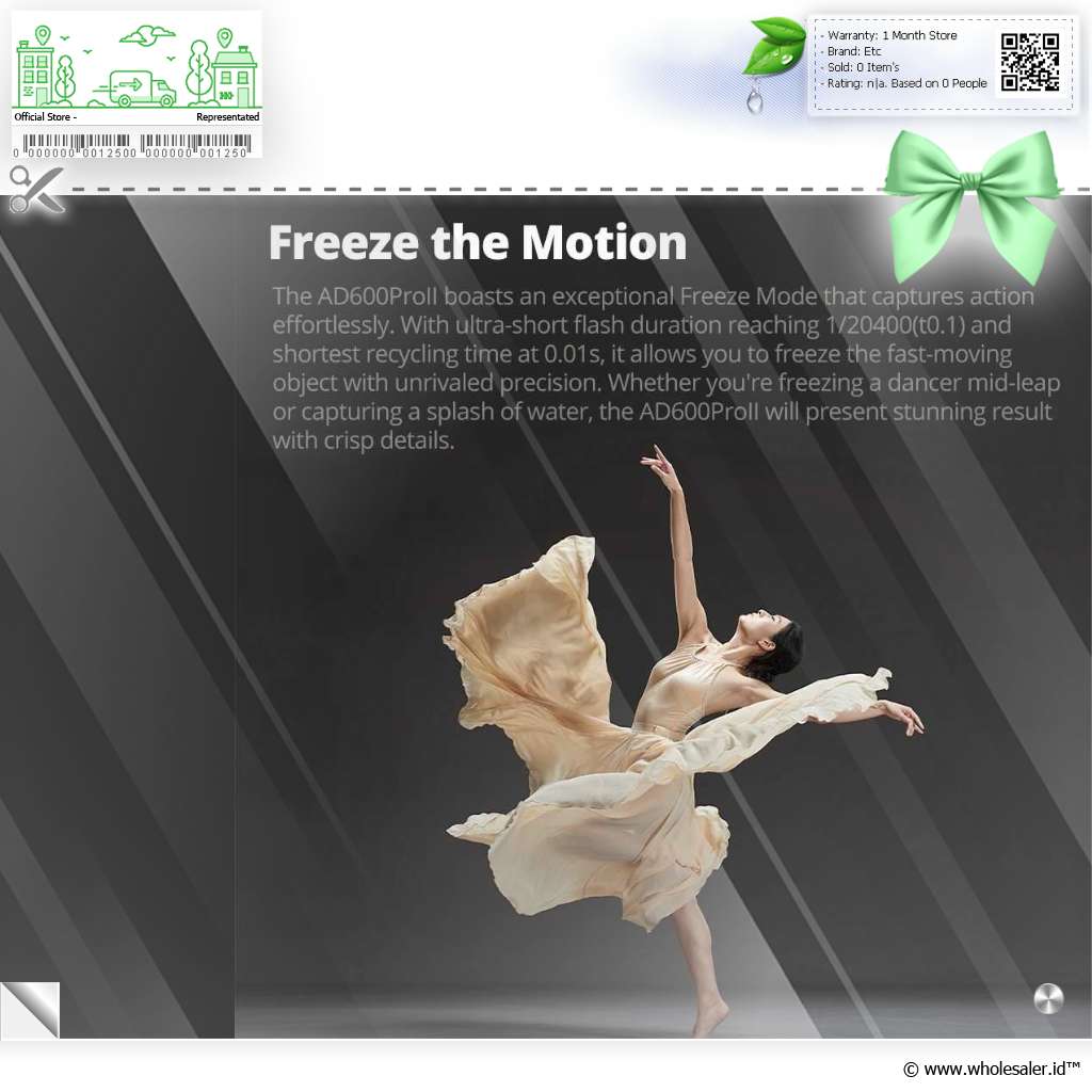 Tangkap Gerakan Cepat Dilengkapi dengan fitur ultra freeze mode yang mampu membekukan gerakan dengan sangat cepat, berkat durasi kilatan yang sangat singkat hingga 1/20400 detik (t0.1). Artinya, Anda bisa menangkap gambar benda yang bergerak cepat seperti tetesan air, kendaraan melaju, atau objek lain dengan detail yang tajam tanpa blur. |