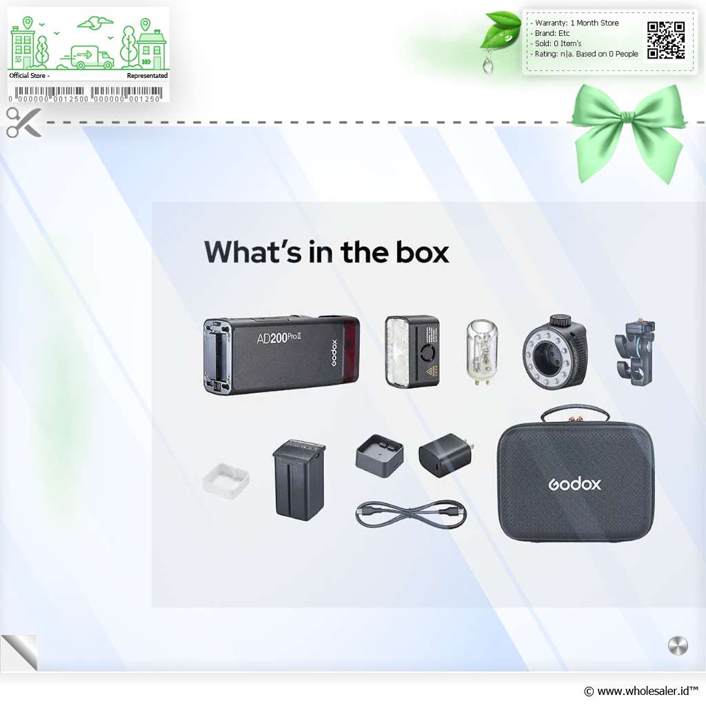 Flash Godox AD200PRO II hadir dengan koneksi nirkabel 2.4 GHz hingga 100 M, daur ulang super cepat 0.01-1.8 detik, dan baterai 2980 mAh untuk 500 kali flash. Dilengkapi pendingin baru, sinkronisasi sekali sentuh, konsistensi warna 100 K, dan 16 indikator warna untuk multi-flash. Kompatibel luas dengan berbagai kamera dan aksesori.