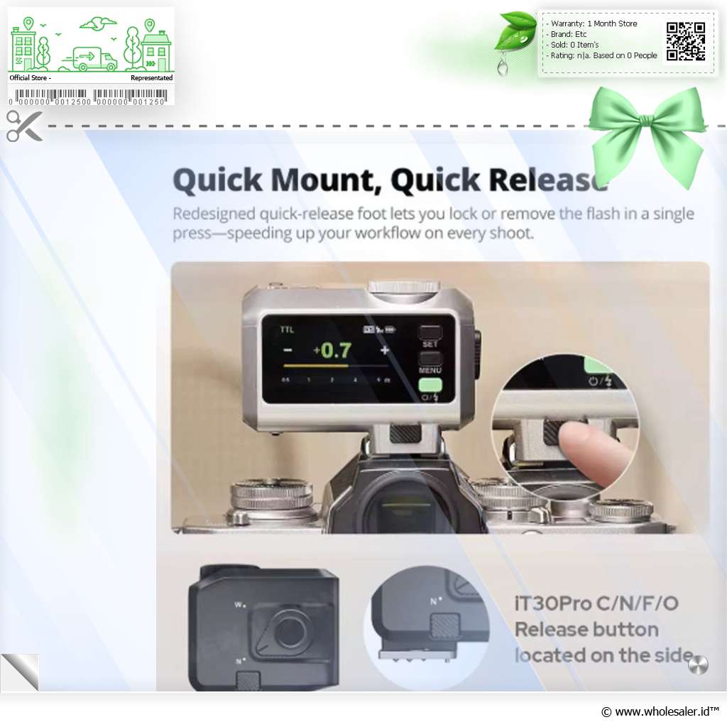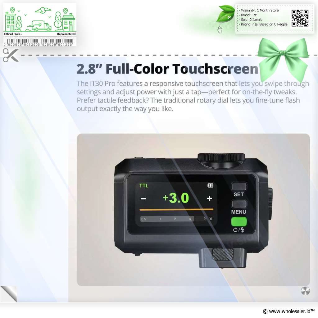 Informasi Produk Godox Flash Camera Wireless 2.4GHz TTL Touchscreen 900mAh - iT30Pro C