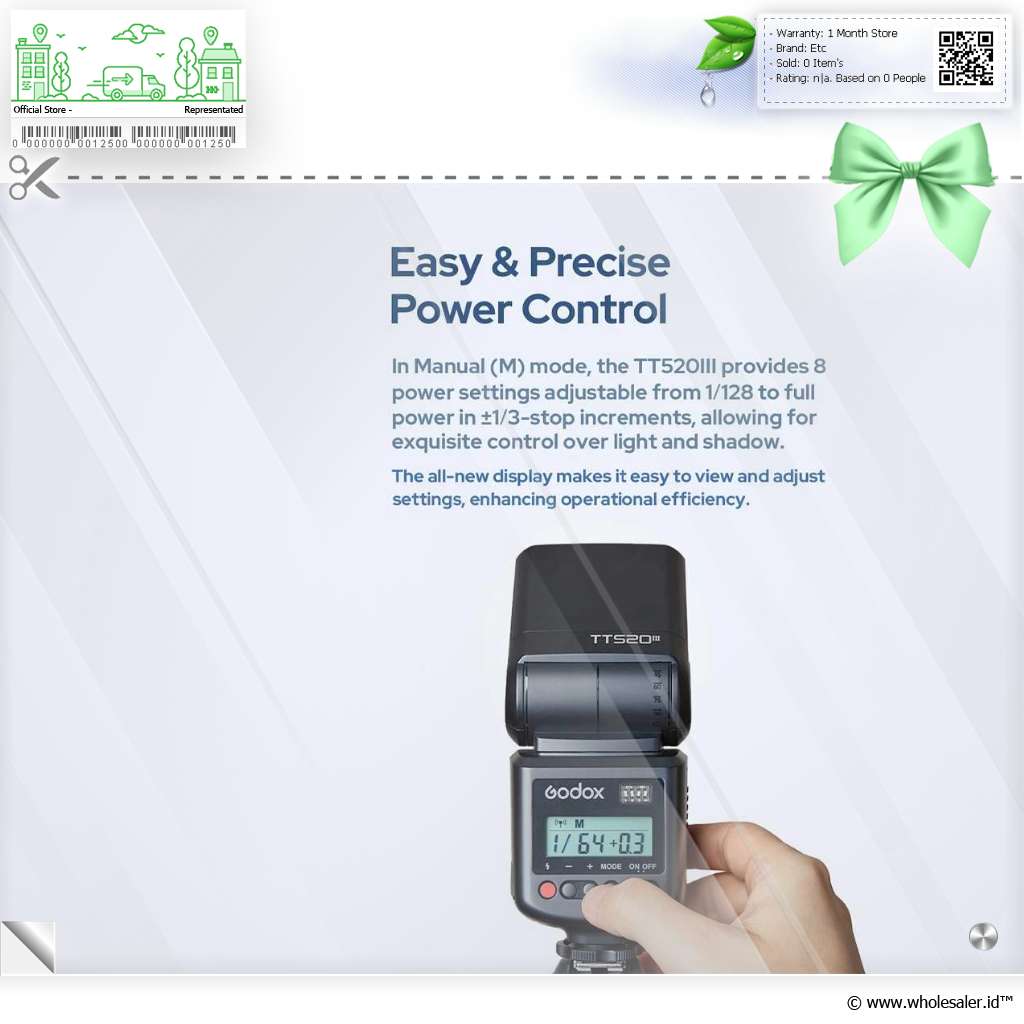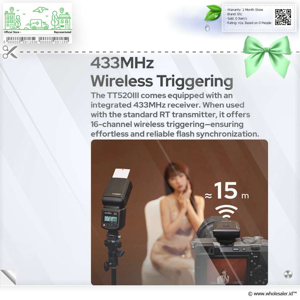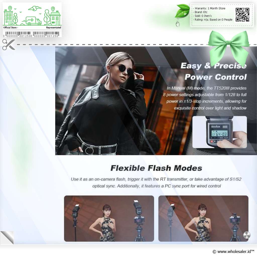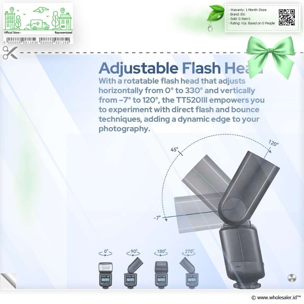 Informasi Produk Godox Flash Camera Wireless 433MHz Adjustable Head 5600K - TT520III THINKLITE