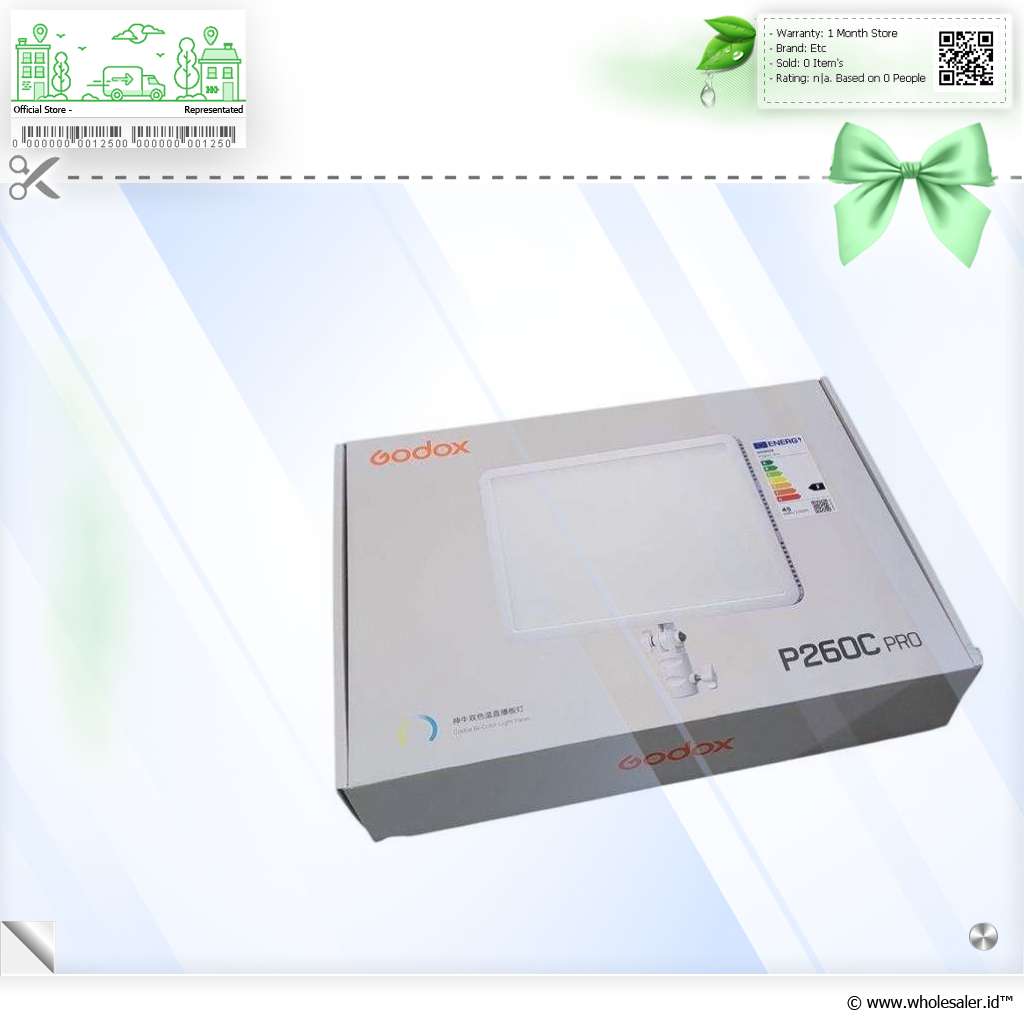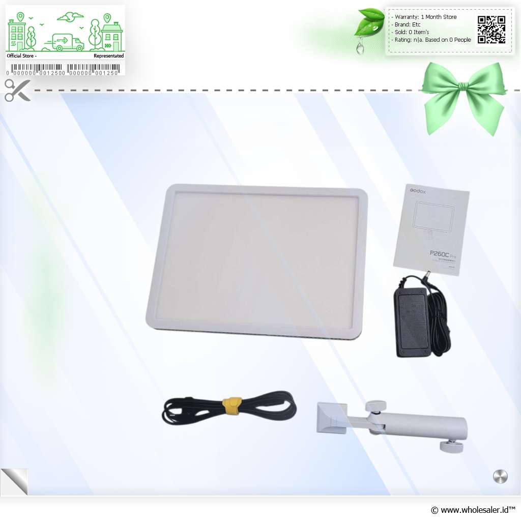 - 1 x Godox Lampu Fill Light LED 2800-6500K Adjustable NFC 45W with APP - P260C Pro