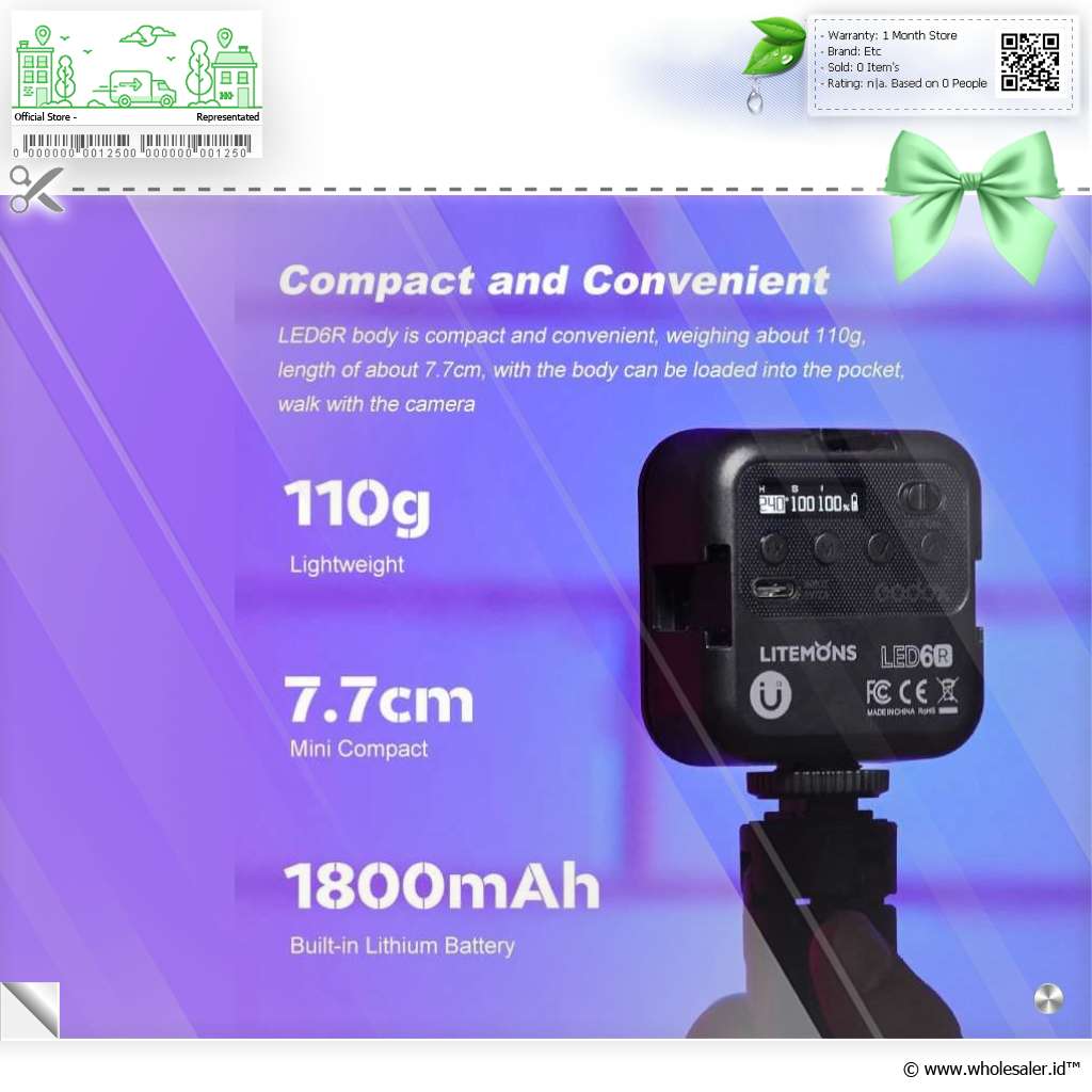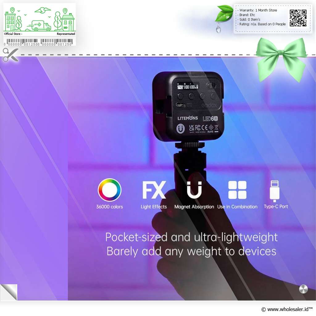 - 1 x Godox Lampu Fill Light LED Magnetic RGBW 3200-6500K 1800mAh 6W - LED6R