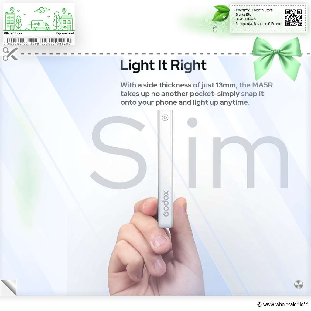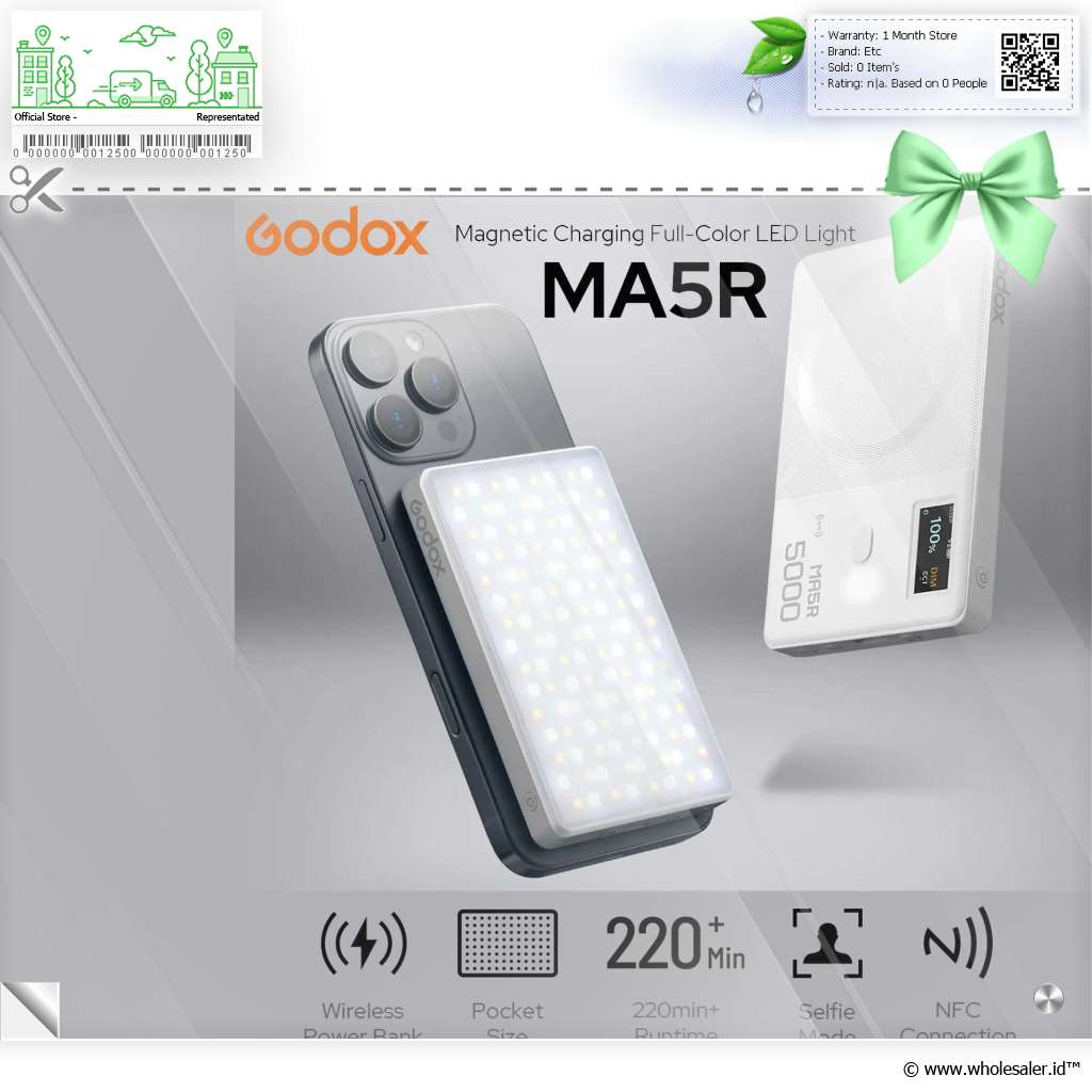 - 1 x Godox Lampu Fill Light Smartphone Magnetic Power Bank RGBW 4900mAh - MA5R